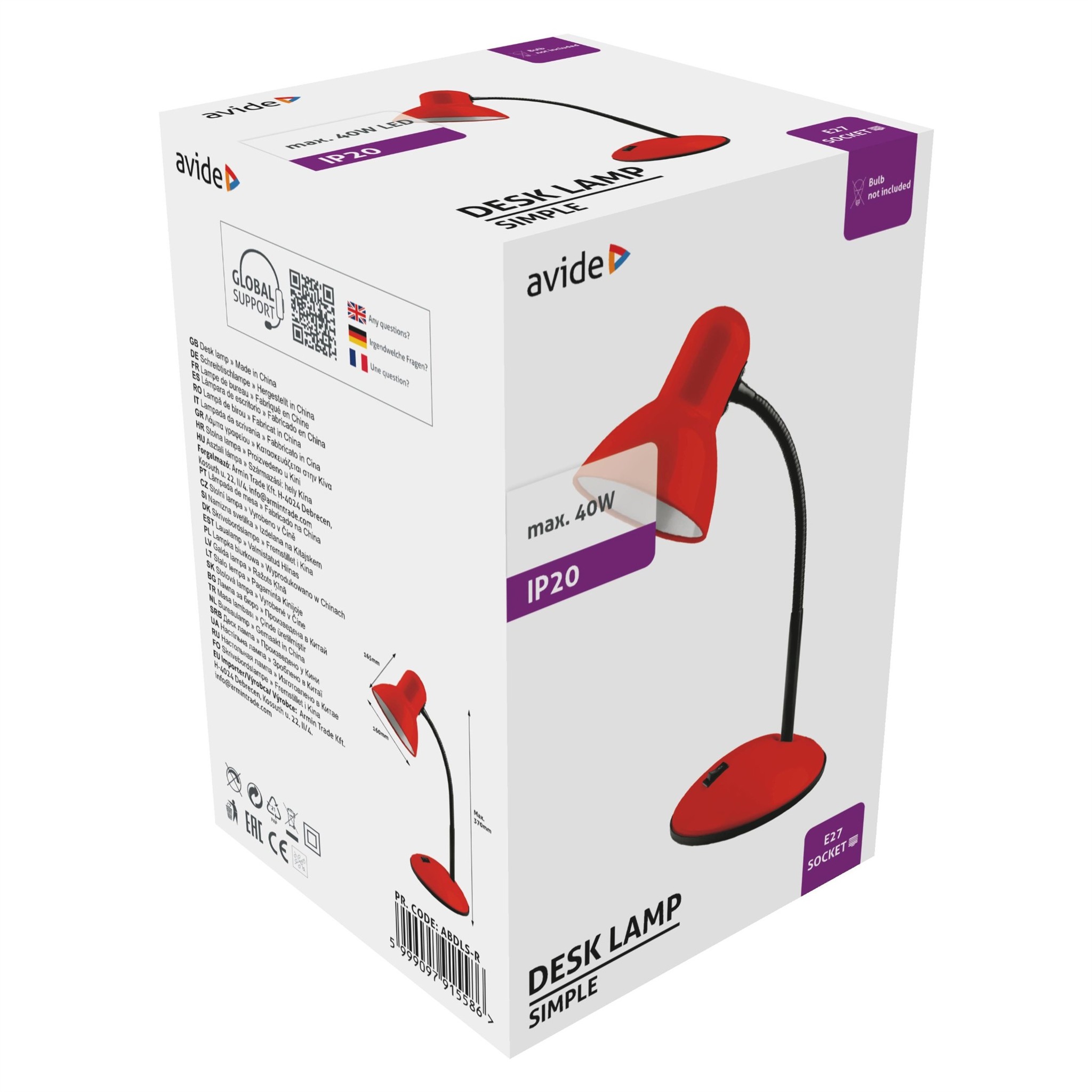 Avide Basic Asztali Lámpa Simple Piros | BR (SKU:ABDLS-R)