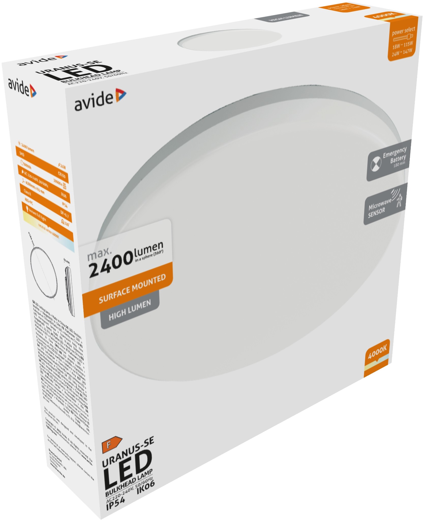 Avide Cseppálló Mennyezeti Lámpa Uranus Kerek IP54 18/24W NW 4000K Szenzoros és Inverteres