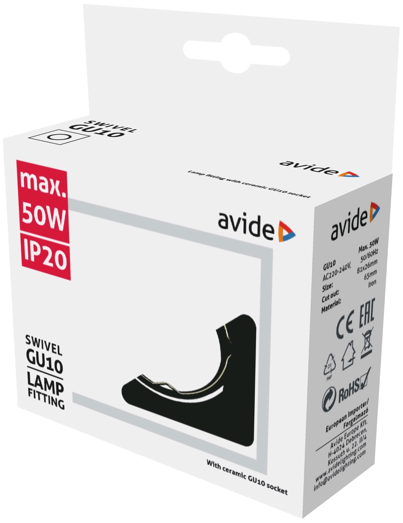 Avide GU10 Keret Négyzetes Forgatható Fekete | BR (SKU:ABGU10F-SS-B)