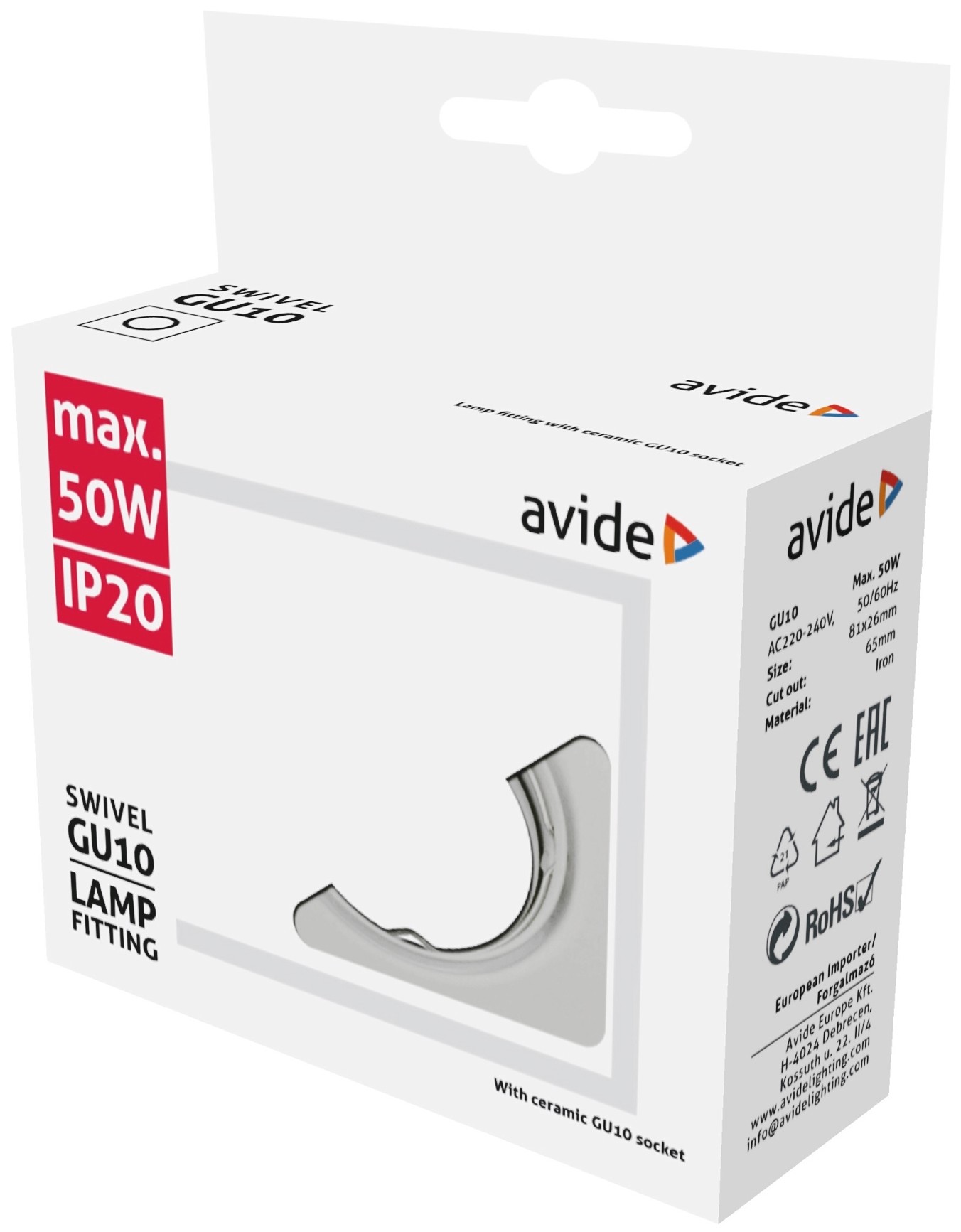 Avide GU10 Keret Négyzetes Forgatható Króm