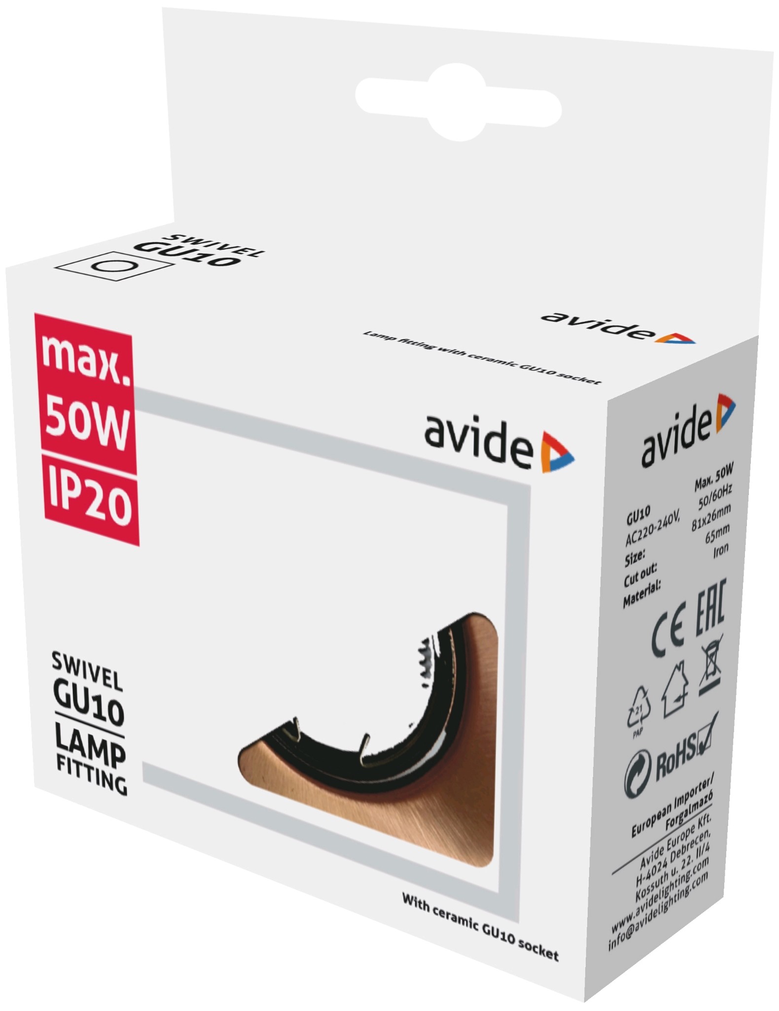 Avide GU10 Keret Négyzetes Forgatható Réz | BR (SKU:ABGU10F-SS-CO)