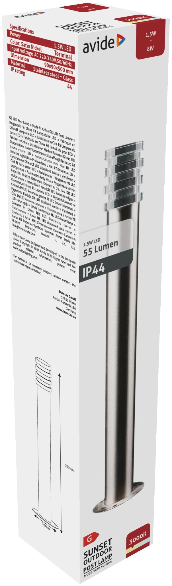 Avide kültéri álló lámpa Sunset LED 1.5W WW 500mm IP44 Szatén Nikkel | BR (SKU:AOLPL-SUN-WW-SN)