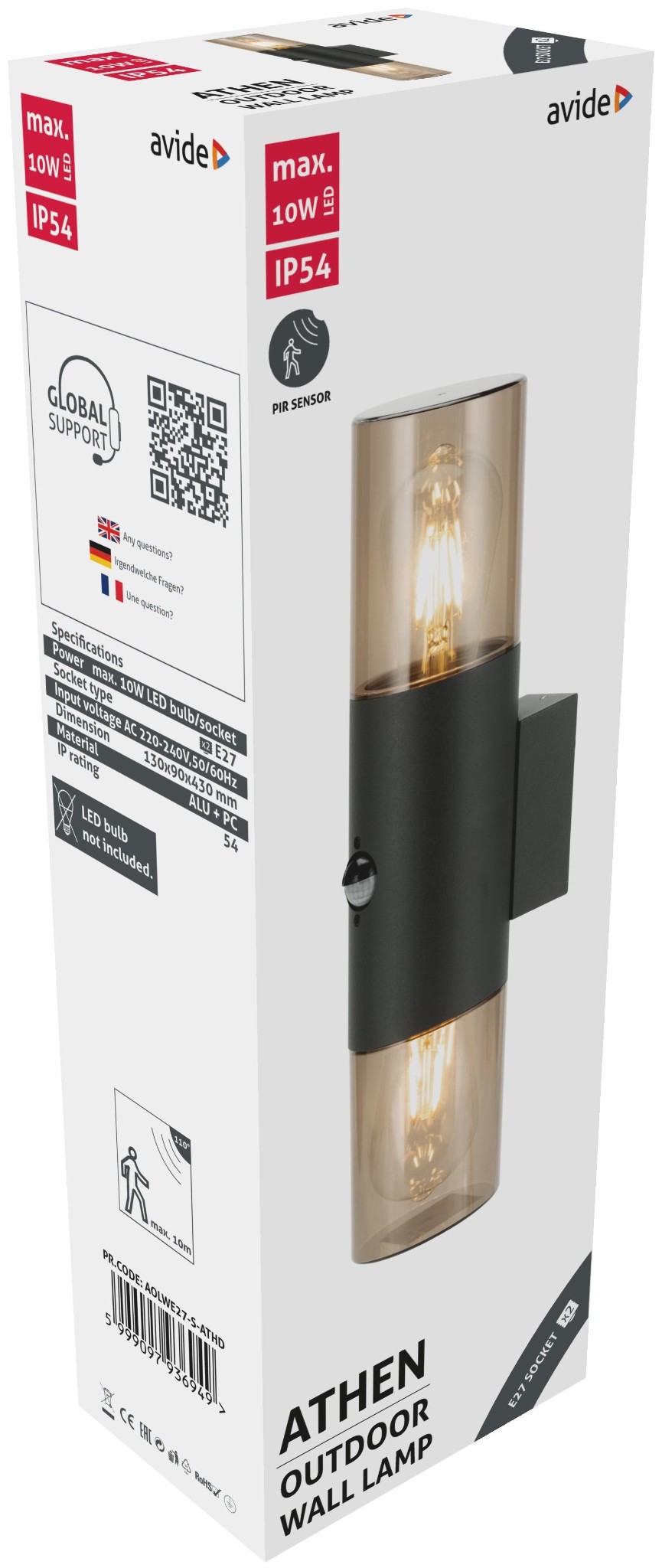 Avide kültéri fali lámpa Athen 2xE27 PIR IP54
