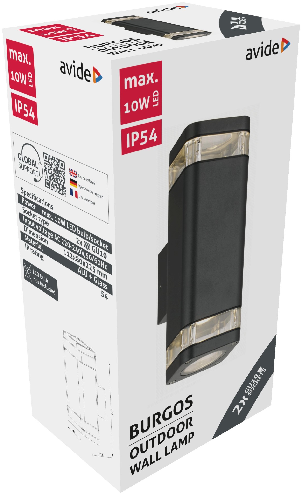 Avide kültéri fali lámpa Burgos 2xGU10 IP54 | BR (SKU:AOLWGU10-BURD)