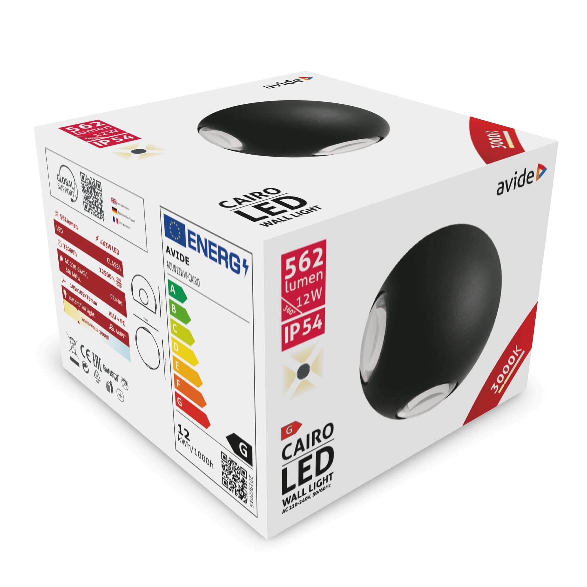 Avide kültéri fali lámpa Cairo 4 irányú LED 12W WW IP54 | BR (SKU:AOLW12WW-CAIRO)