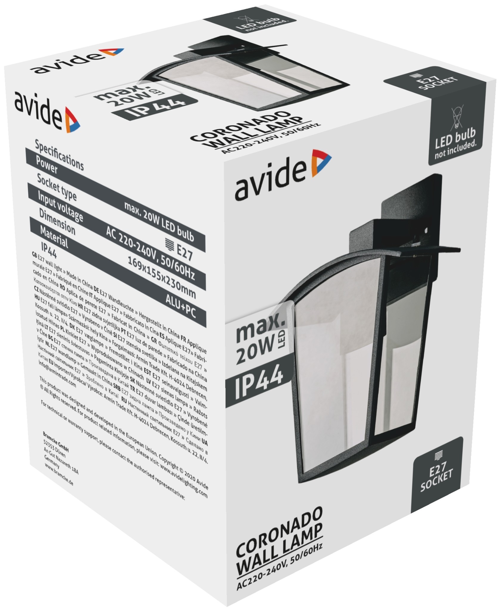 Avide kültéri fali lámpa Coronado 1xE27 IP44 fekete