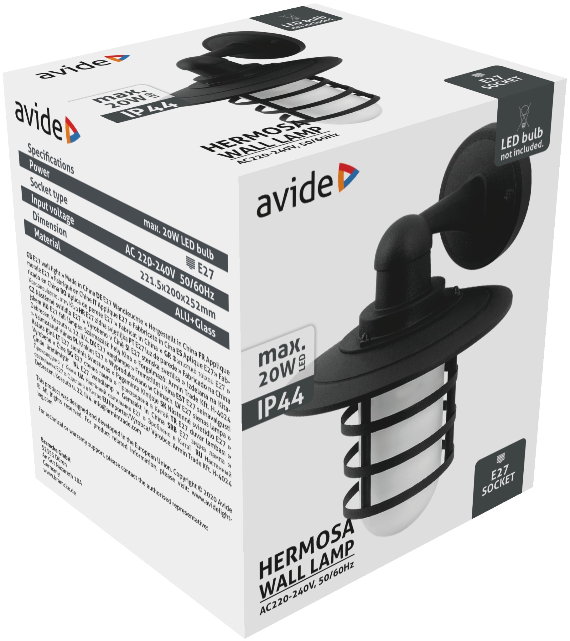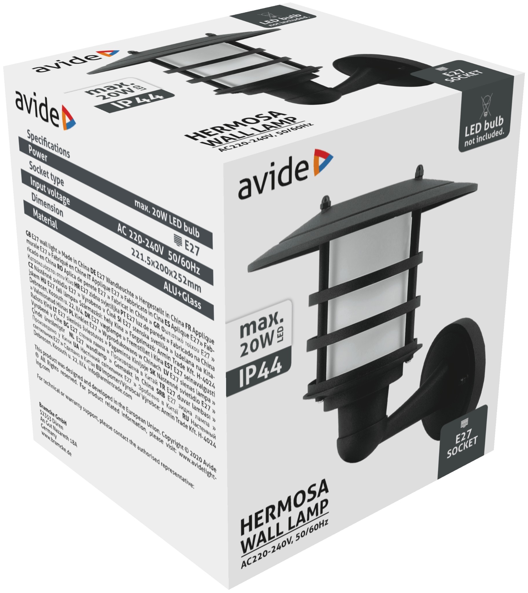 Avide kültéri fali lámpa Hermosa 1xE27 IP44 fekete