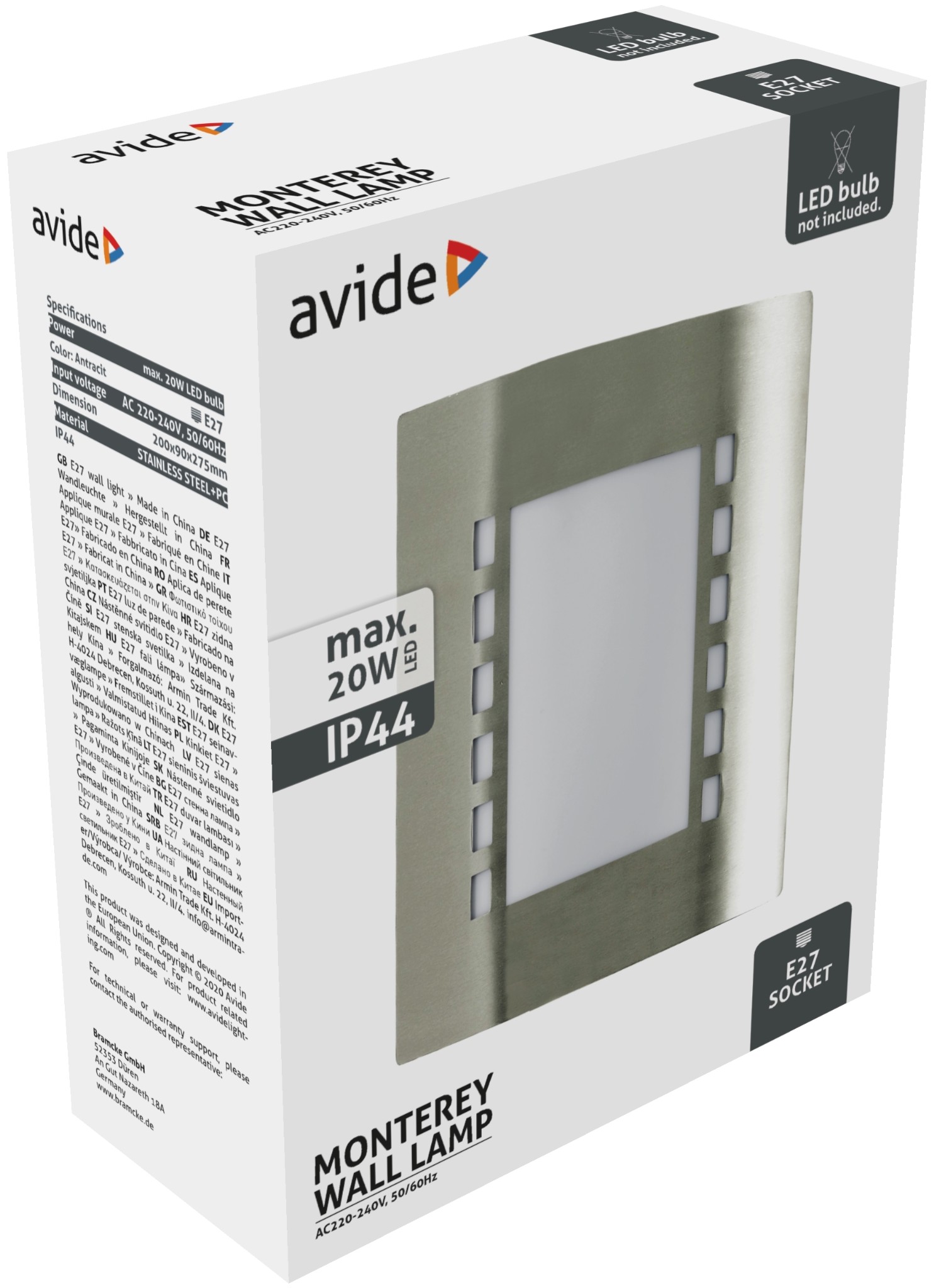 Avide kültéri fali lámpa Monterey 1xE27 IP44 Szatén Nikkel