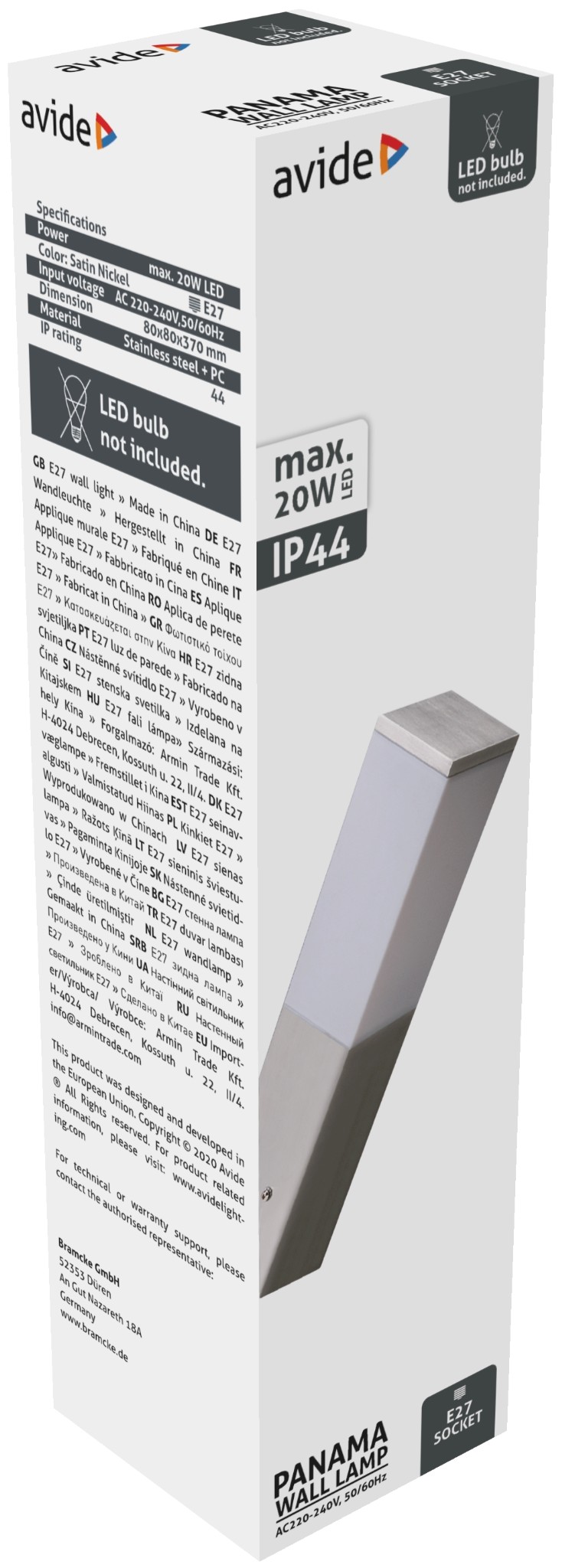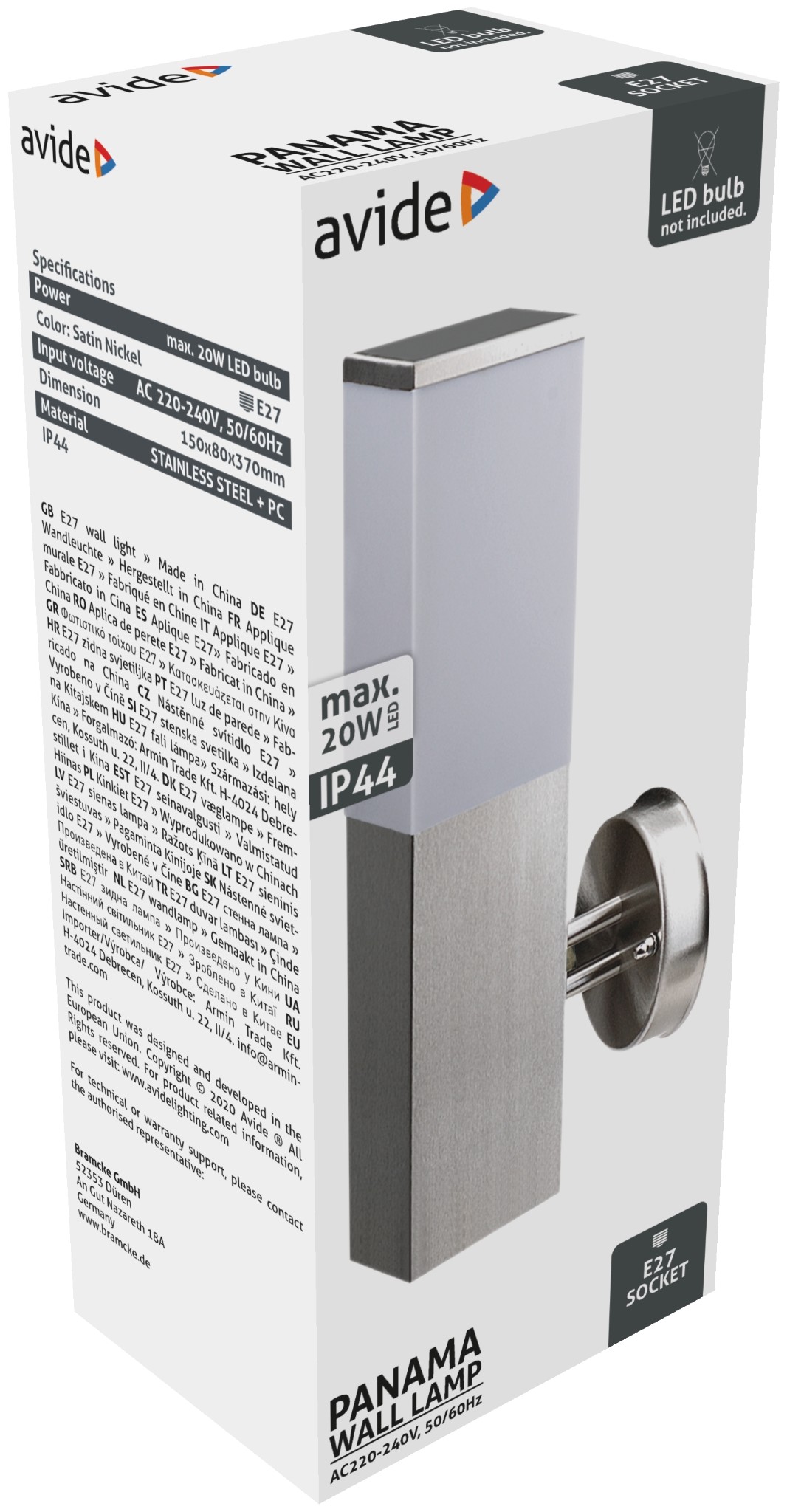 Avide kültéri fali lámpa Panama 1xE27 IP44 Szatén Nikkel