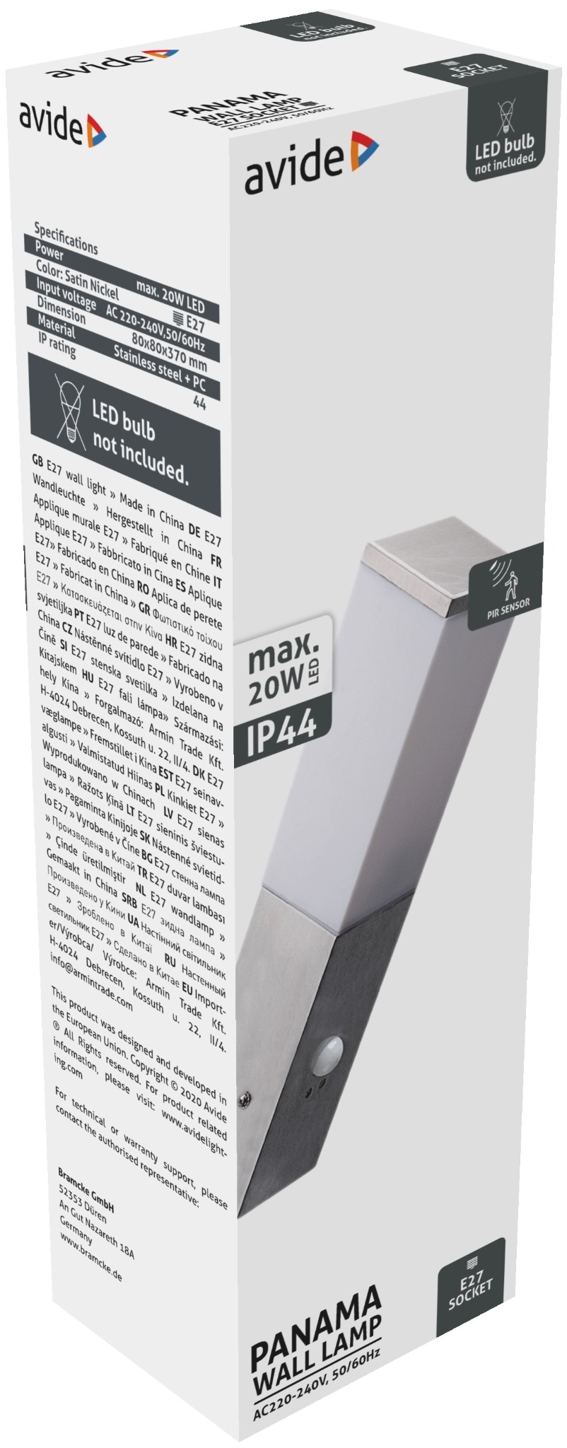 Avide kültéri fali lámpa Panama 1xE27 PIR IP44 Szatén Nikkel