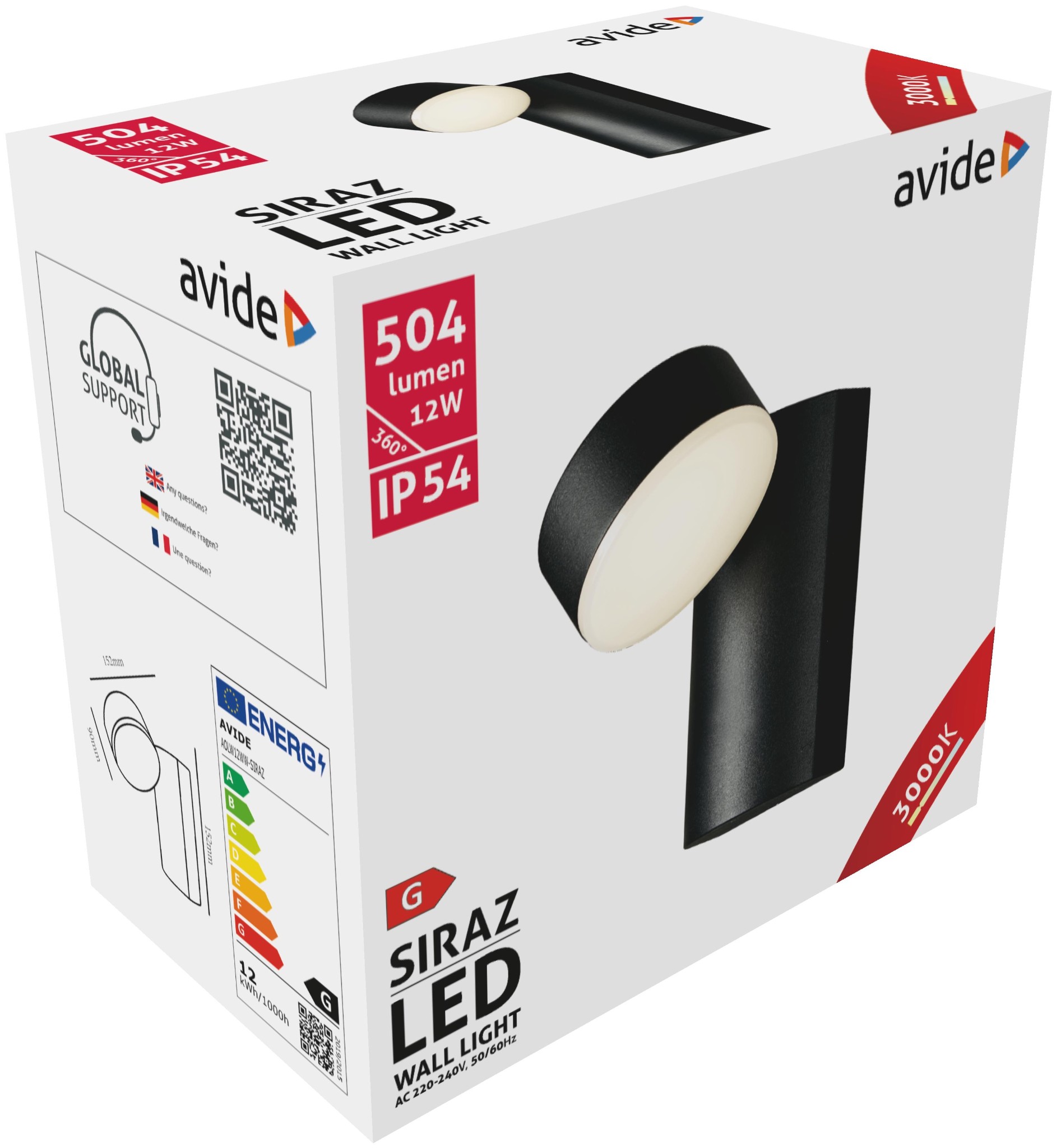 Avide kültéri fali lámpa Siraz LED 12W WW IP54 | BR (SKU:AOLW12WW-SIRAZ)