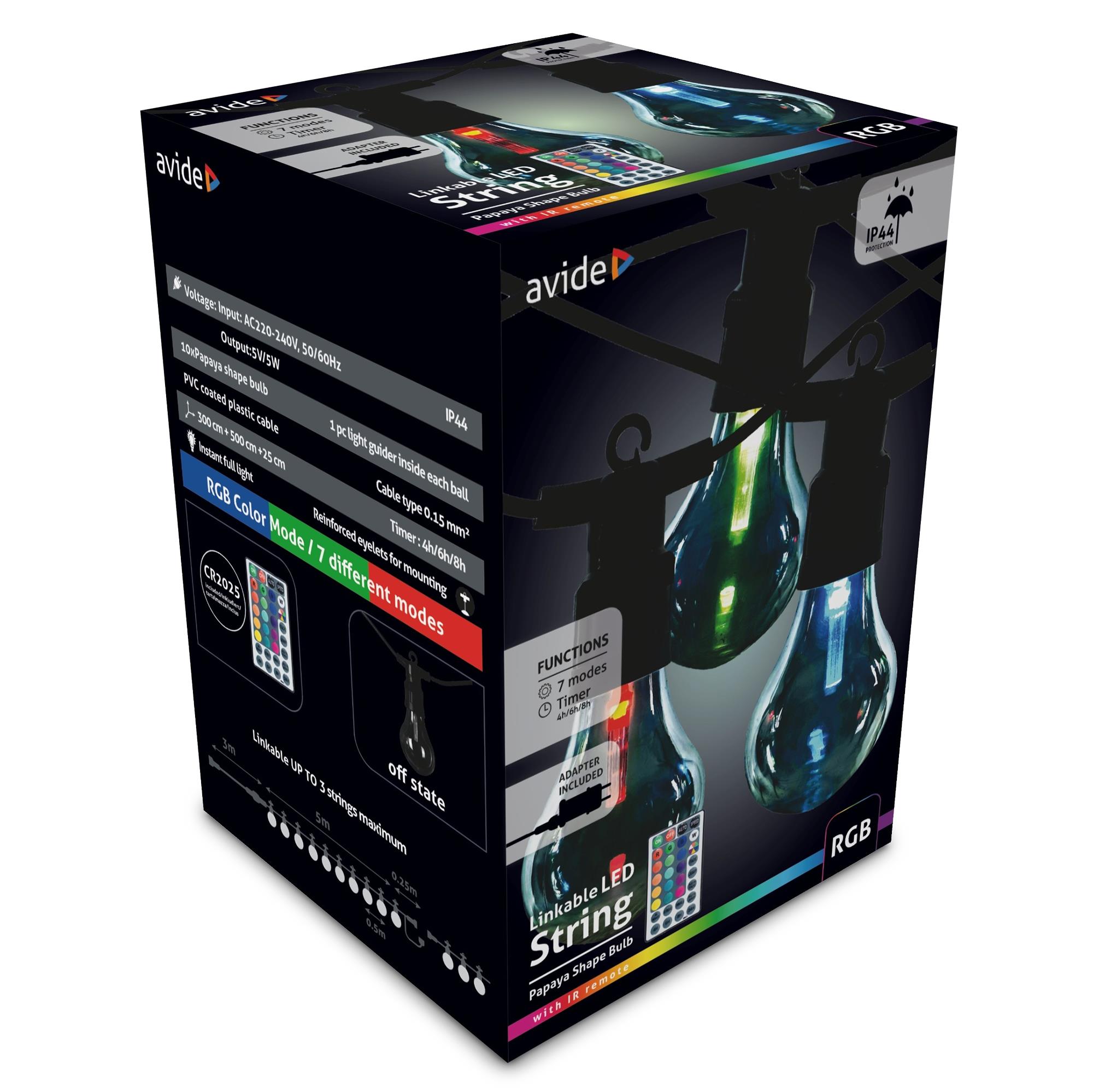 Avide Kültéri Füzér 5m Papaya RGB Sorolható Távirányítóval | BR (SKU:AOS10LE27PLR-RGB)