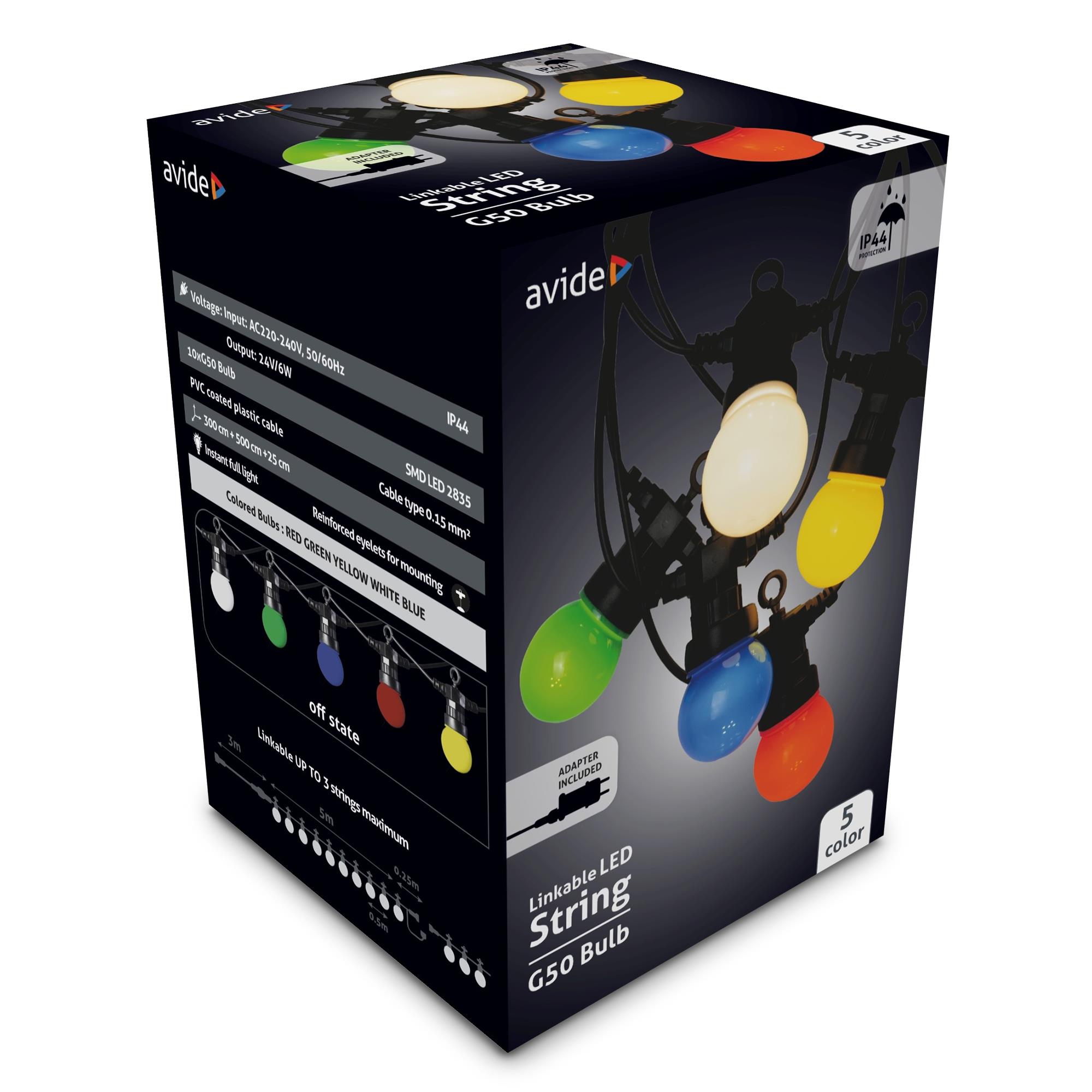 Avide Kültéri Füzér 5m Sorolható (Piros/Zöld/Kék/Sárga/Fehér)