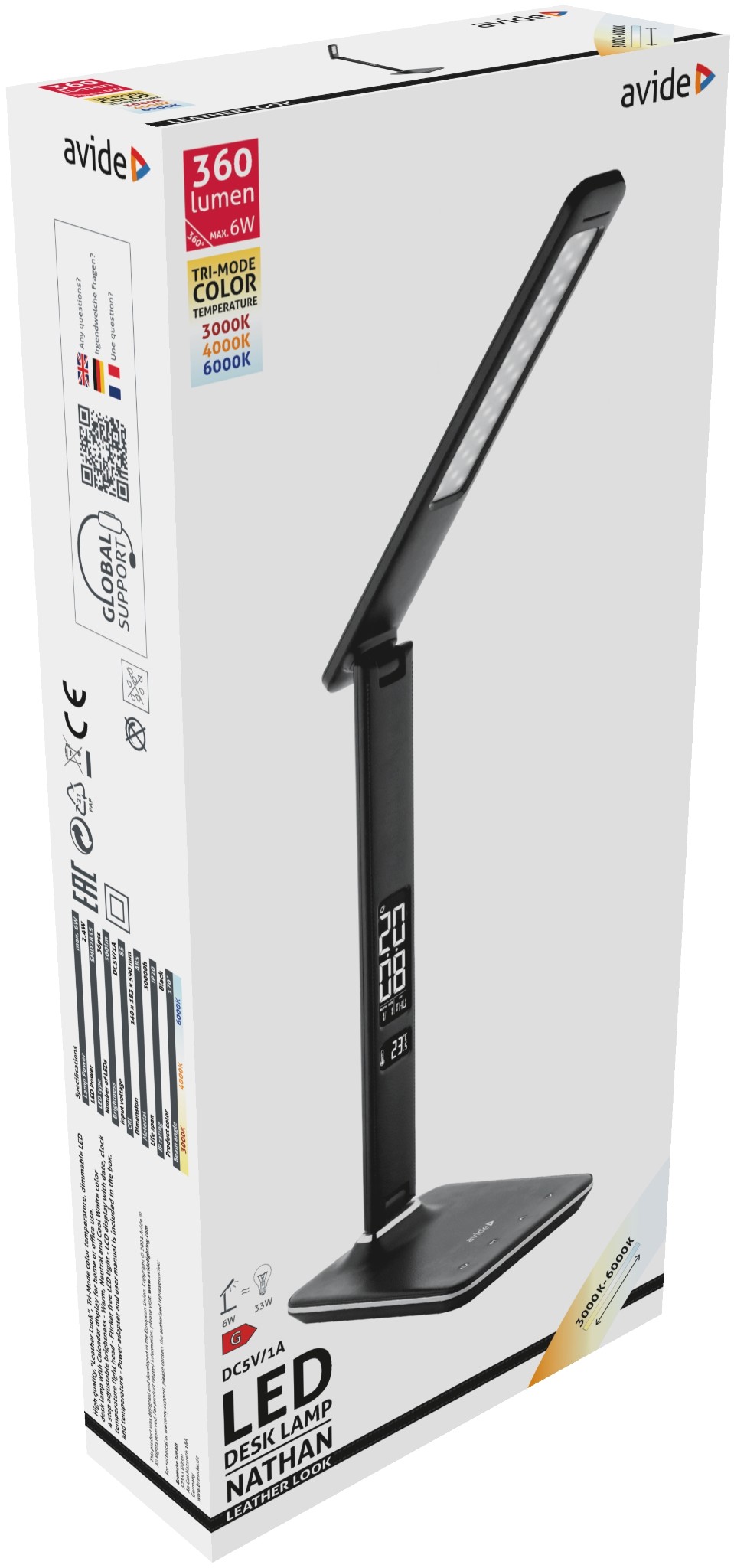Avide LED Asztali Lámpa Irodai Bőrhatású Naptár Nathan Fekete 6W
