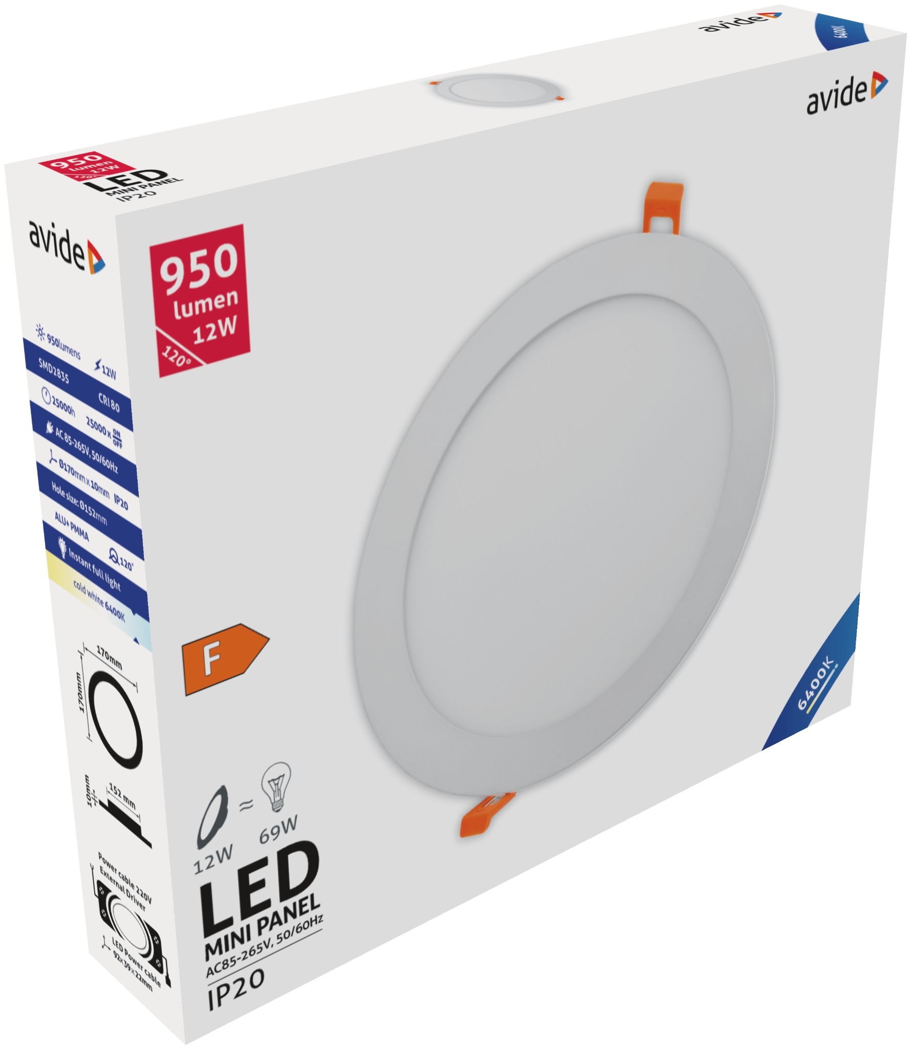 Avide LED Beépíthető Kerek Mennyezeti Lámpa ALU 12W CW 6400K
