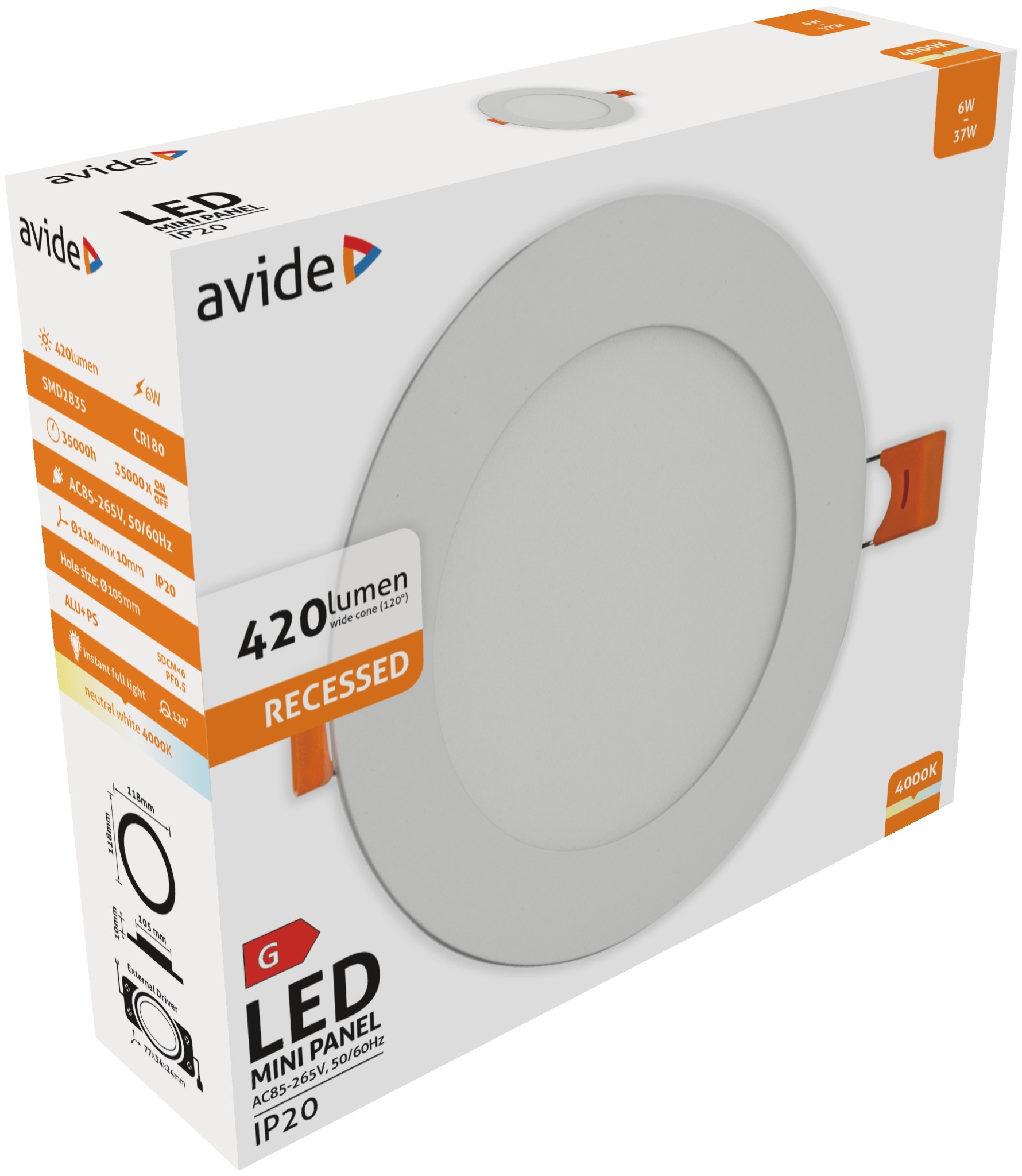Avide LED Beépíthető Kerek Mennyezeti Lámpa ALU 6W NW 4000K | BR (SKU:ACRPNW-R-6W-ALU)