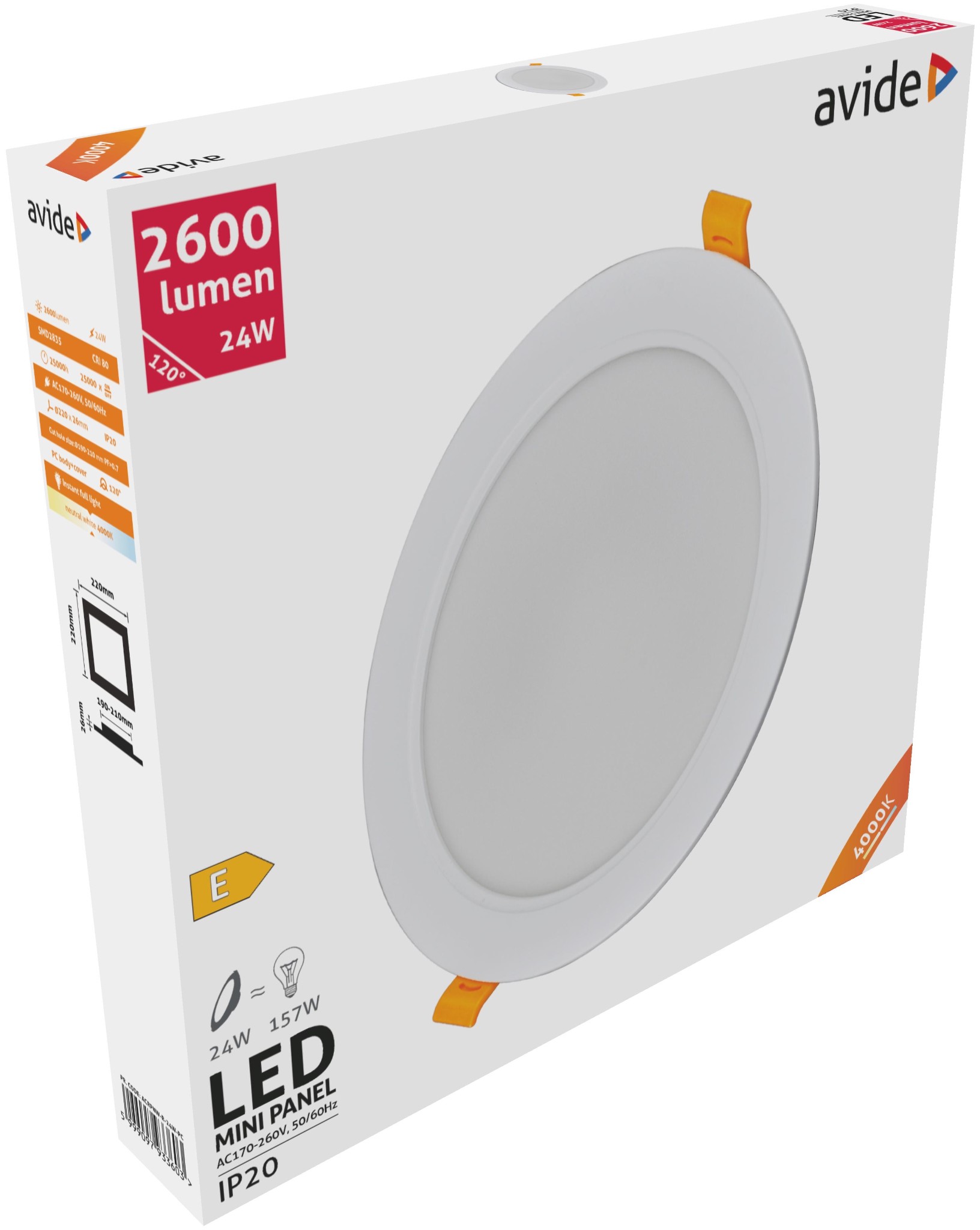 Avide LED Beépíthető Kerek Mennyezeti Lámpa Műanyag 24W NW 4000K