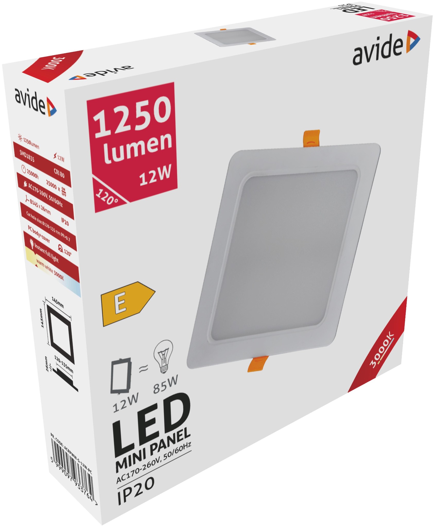 Avide LED Beépíthető Négyzetes Mennyezeti Lámpa Műanyag 12W WW 3000K