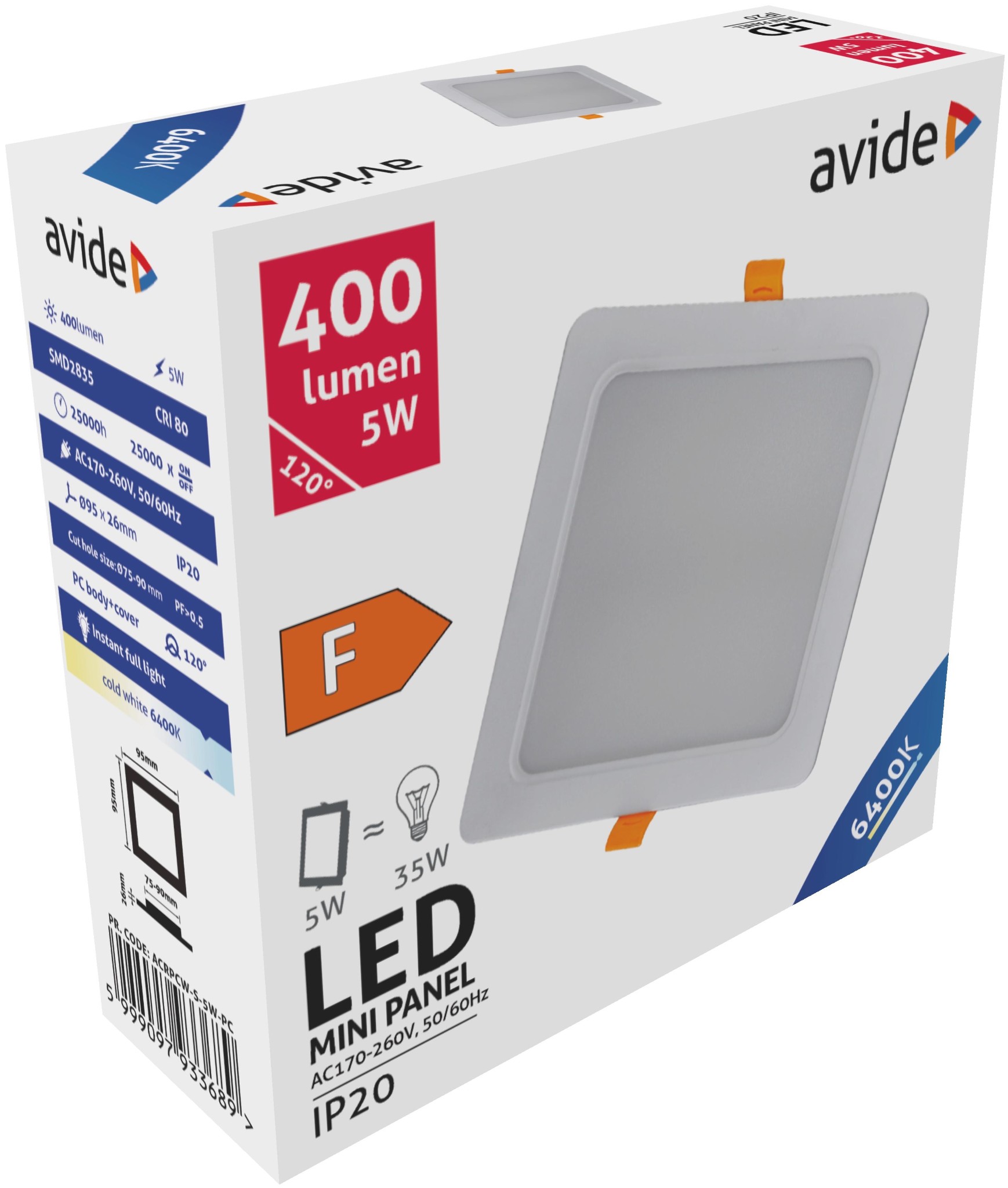 Avide LED Beépíthető Négyzetes Mennyezeti Lámpa Műanyag 5W CW 6400K