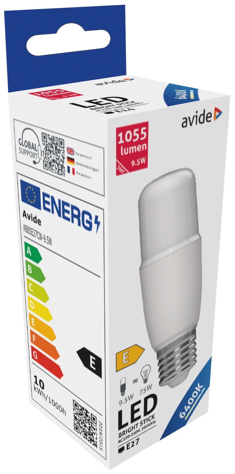 Avide LED Bright Stick izzó T37 9.5W E27 CW 6400K