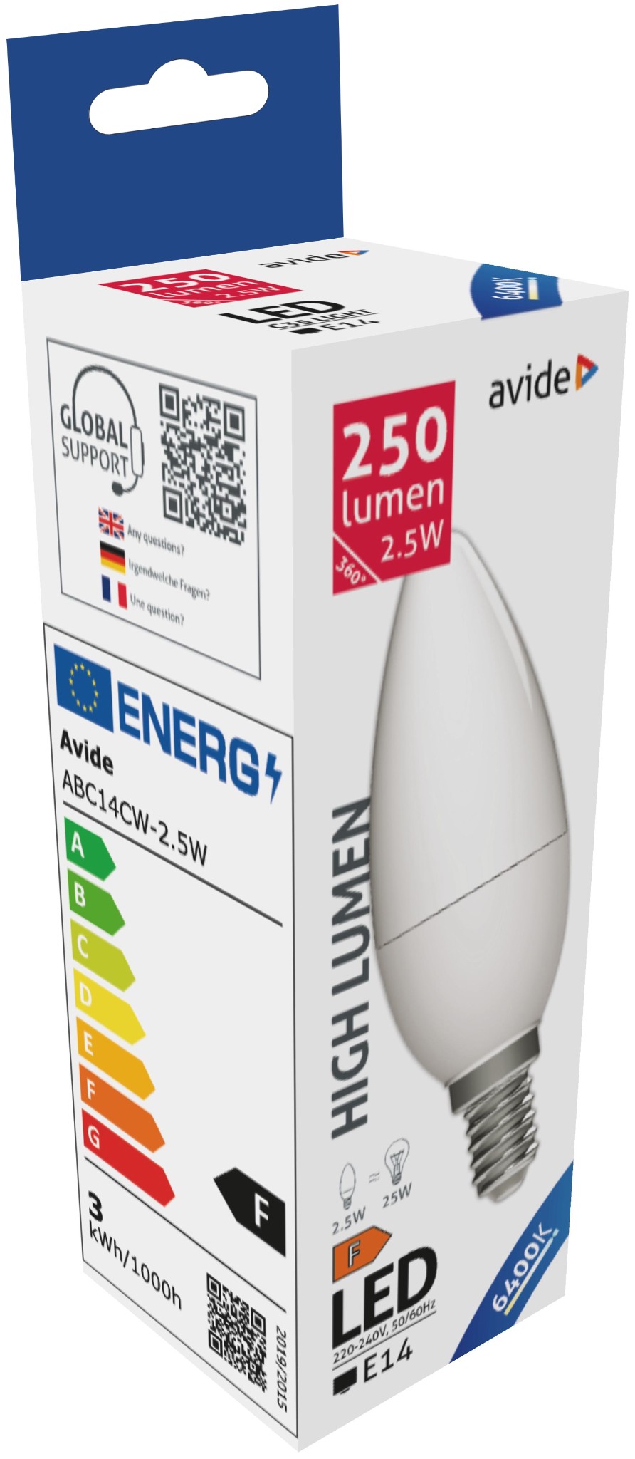 Avide LED Candle 2.5W E14 CW 6400K
