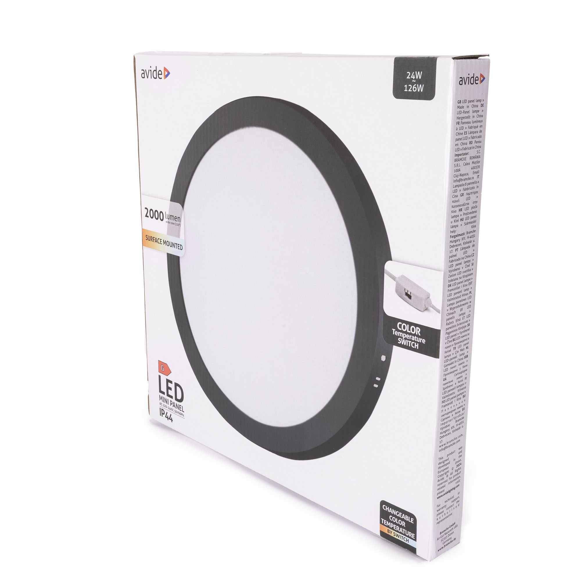 Avide LED Falra Szerelhető Kerek Mennyezeti Lámpa ALU 24W CCT IP44/IP20 Fekete