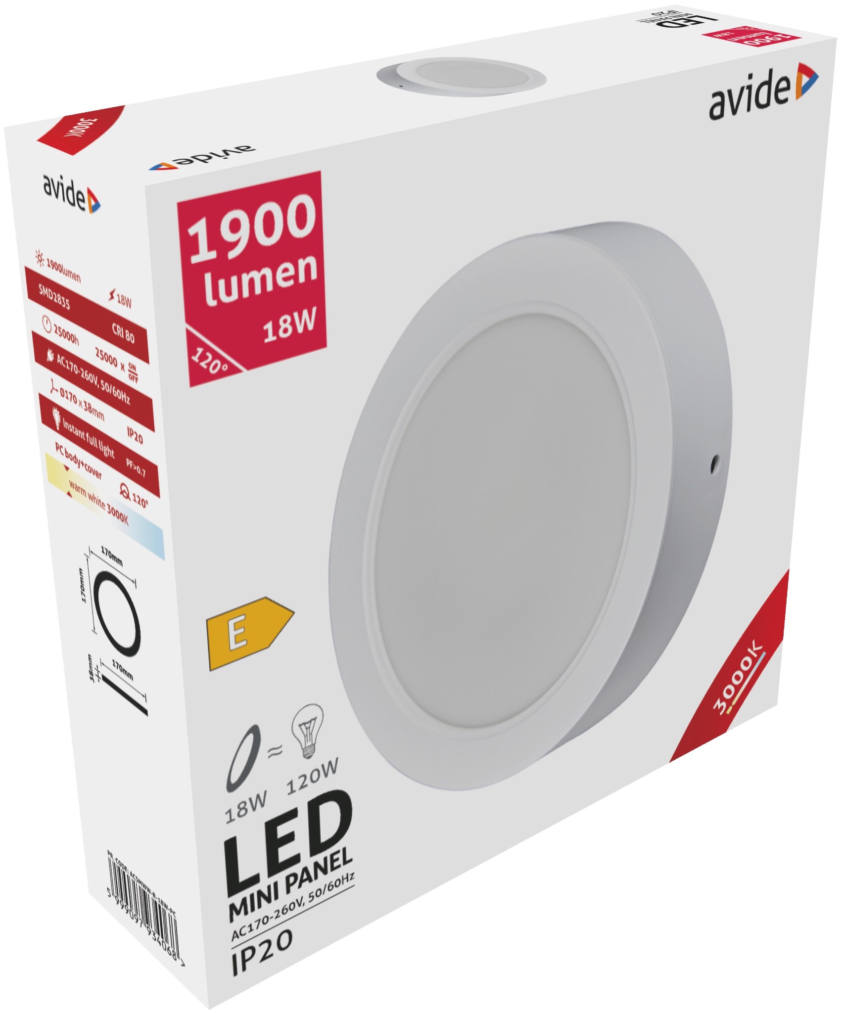Avide LED Falra Szerelhető Kerek Mennyezeti Lámpa Műanyag 18W WW 3000K