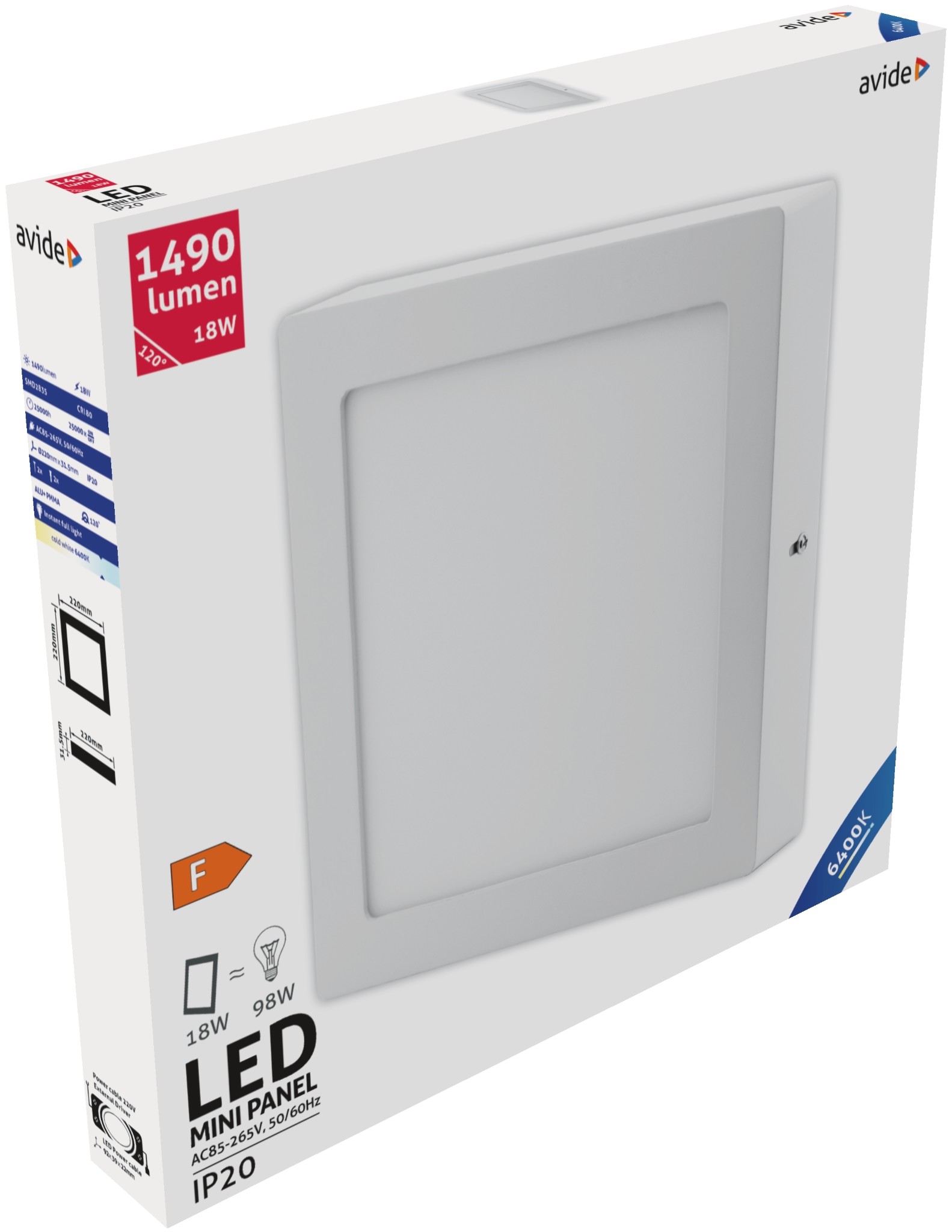 Avide LED Falra Szerelhető Négyzetes Mennyezeti Lámpa ALU 18W CW 6400K | BR (SKU:ACSMCW-S-18W-ALU)