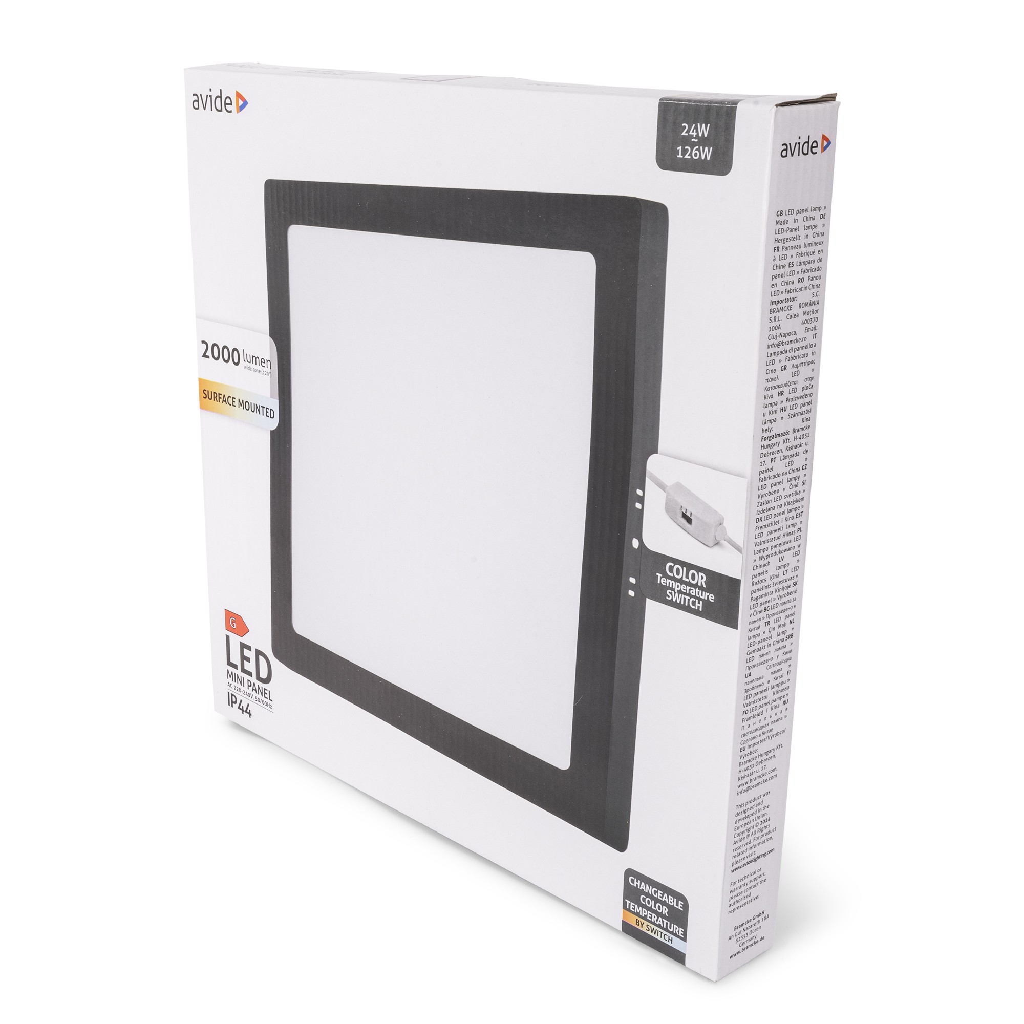 Avide LED Falra Szerelhető Négyzetes Mennyezeti Lámpa ALU 24W CCT IP44/IP20 Fekete
