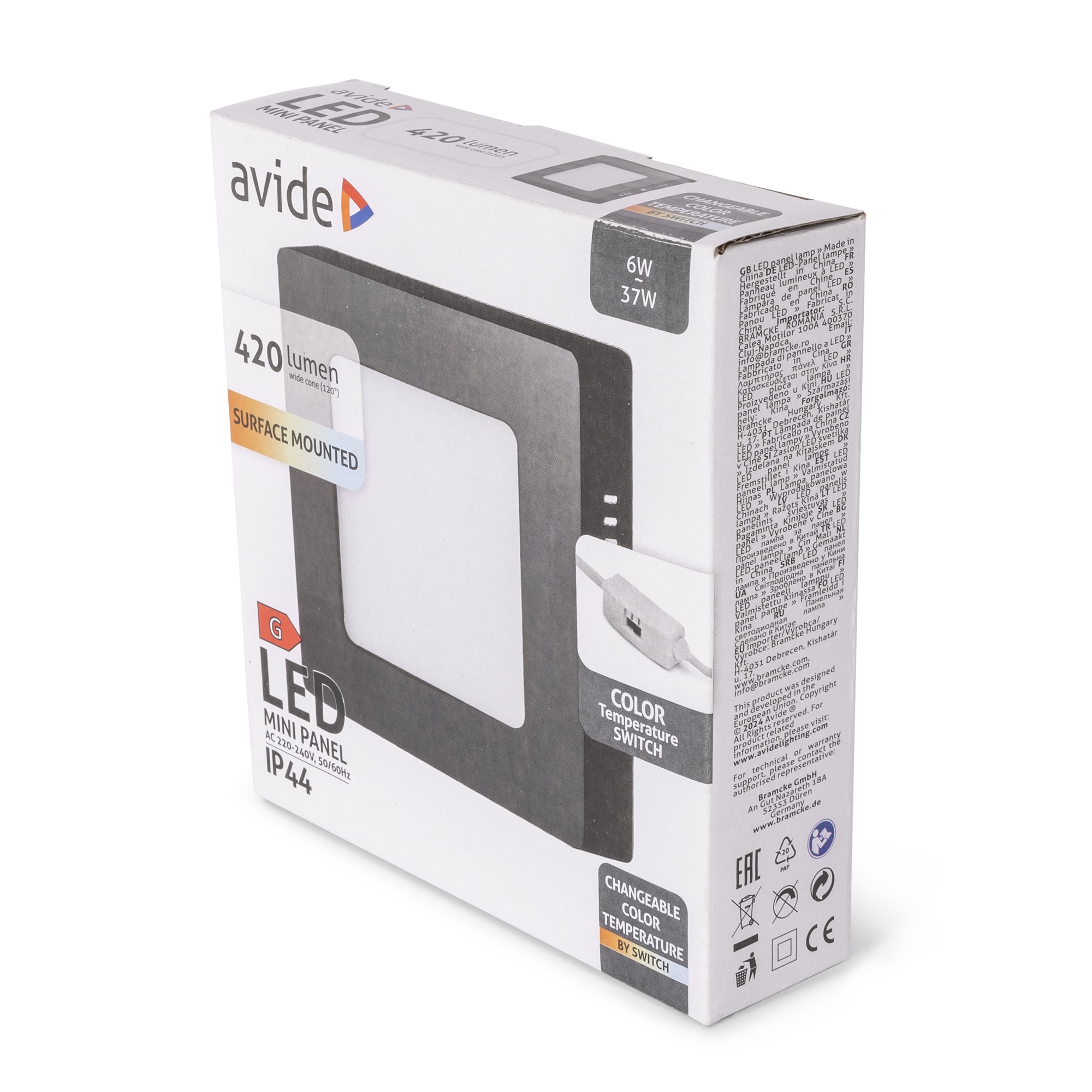 Avide LED Falra Szerelhető Négyzetes Mennyezeti Lámpa ALU 6W CCT IP44/IP20 Fekete