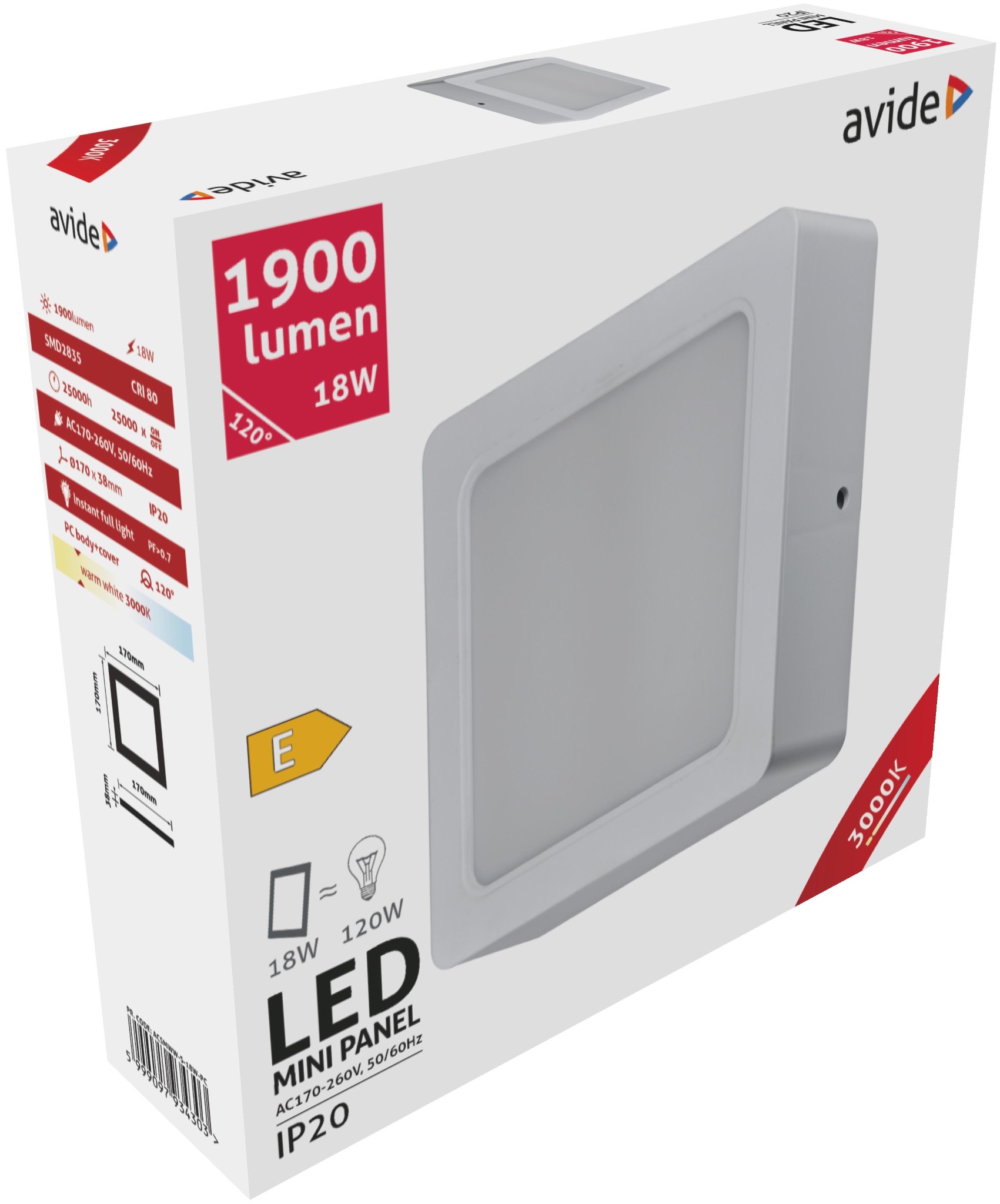 Avide LED Falra Szerelhető Négyzetes Mennyezeti Lámpa Műanyag 18W WW 3000K | BR (SKU:ACSMWW-S-18W-PC)