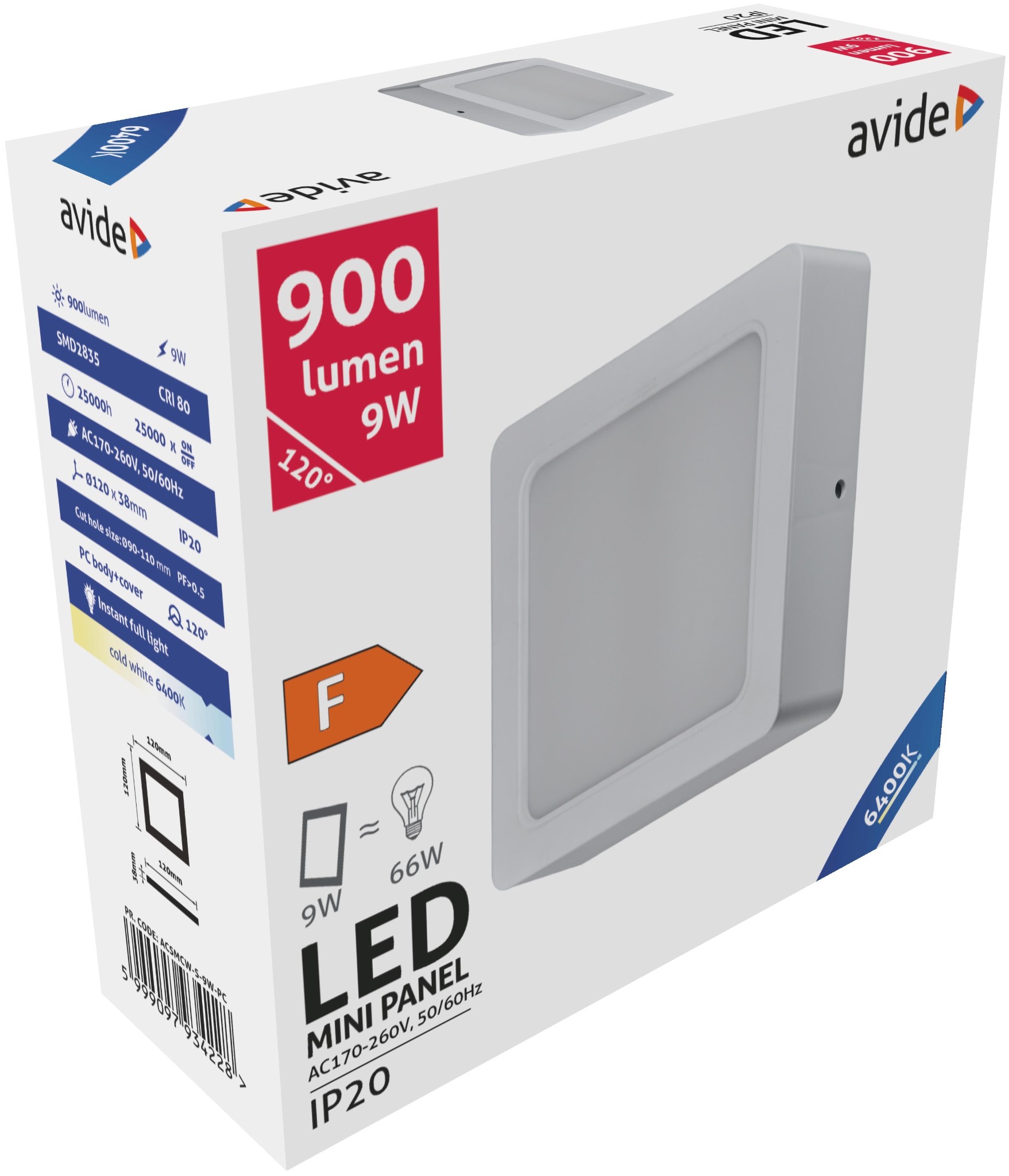 Avide LED Falra Szerelhető Négyzetes Mennyezeti Lámpa Műanyag 9W CW 6400K