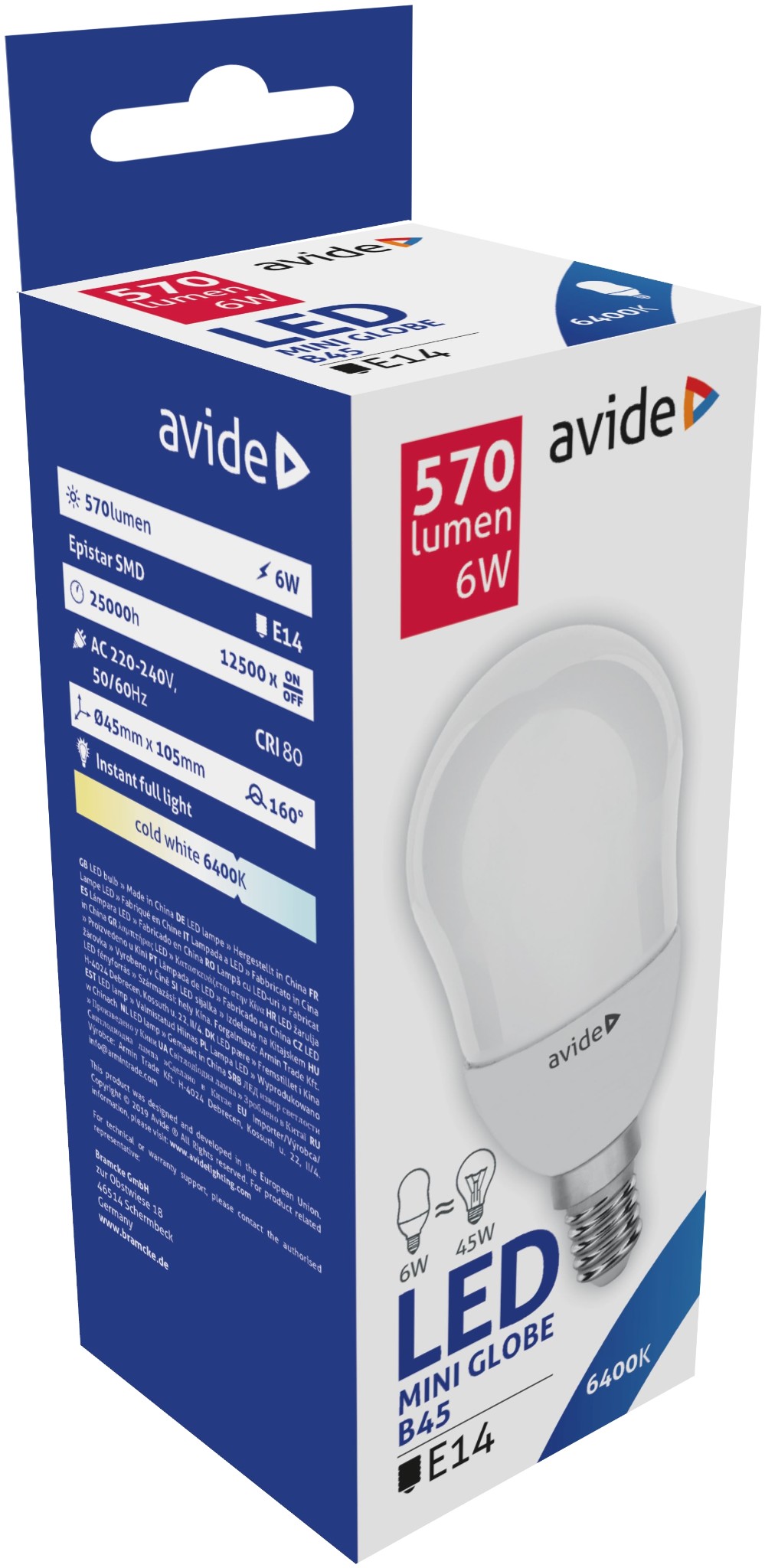 Avide LED Globe Mini B45 6W E14 CW 6400K