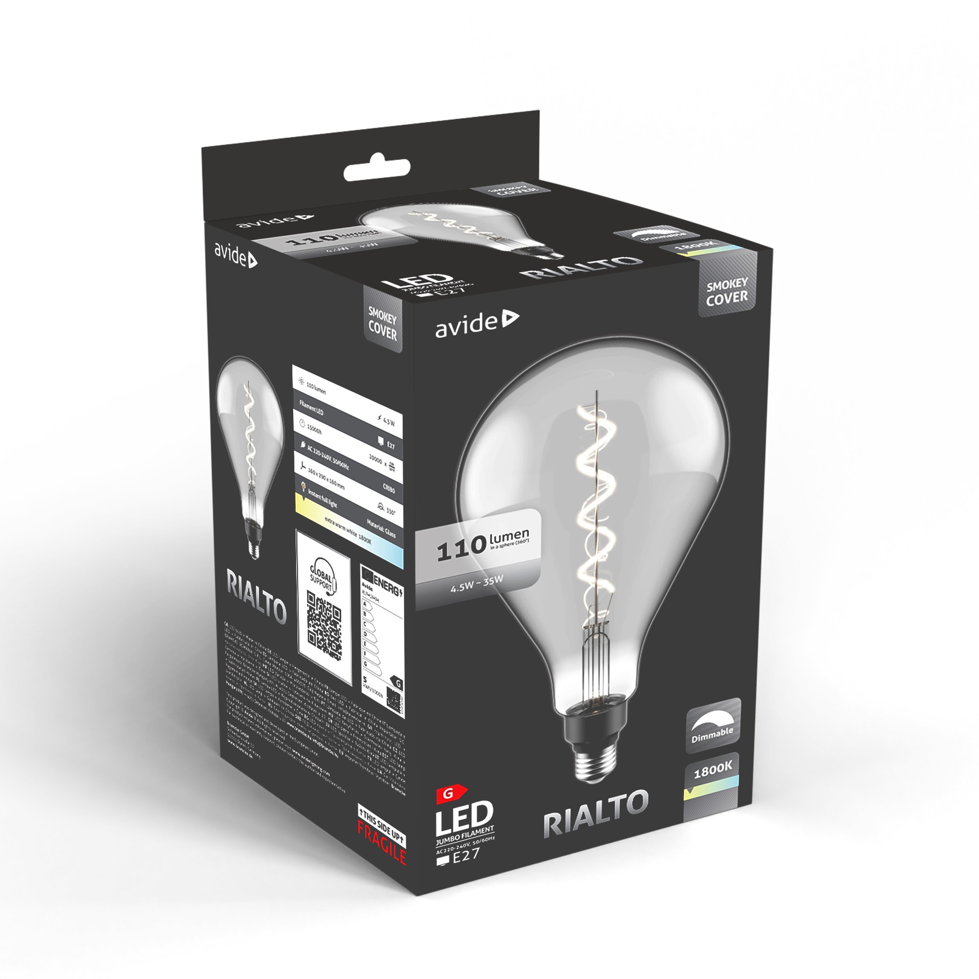 Avide LED Jumbo Filament Rialto Smokey 4.5W E27 2200K Fényerőszabályzós