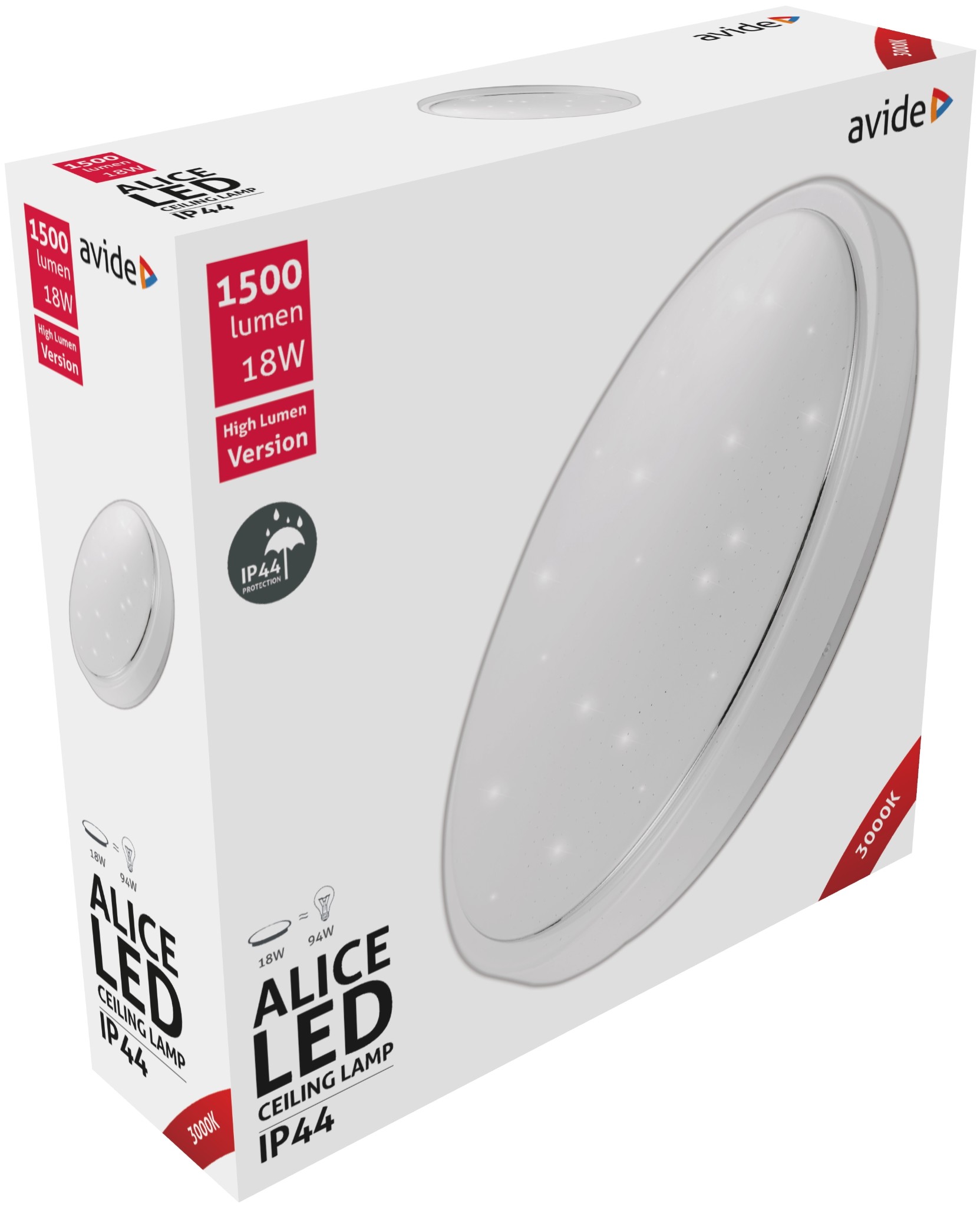 Avide LED Mennyezeti Lámpa IP44 Alice 18W 330*100mm WW 3000K