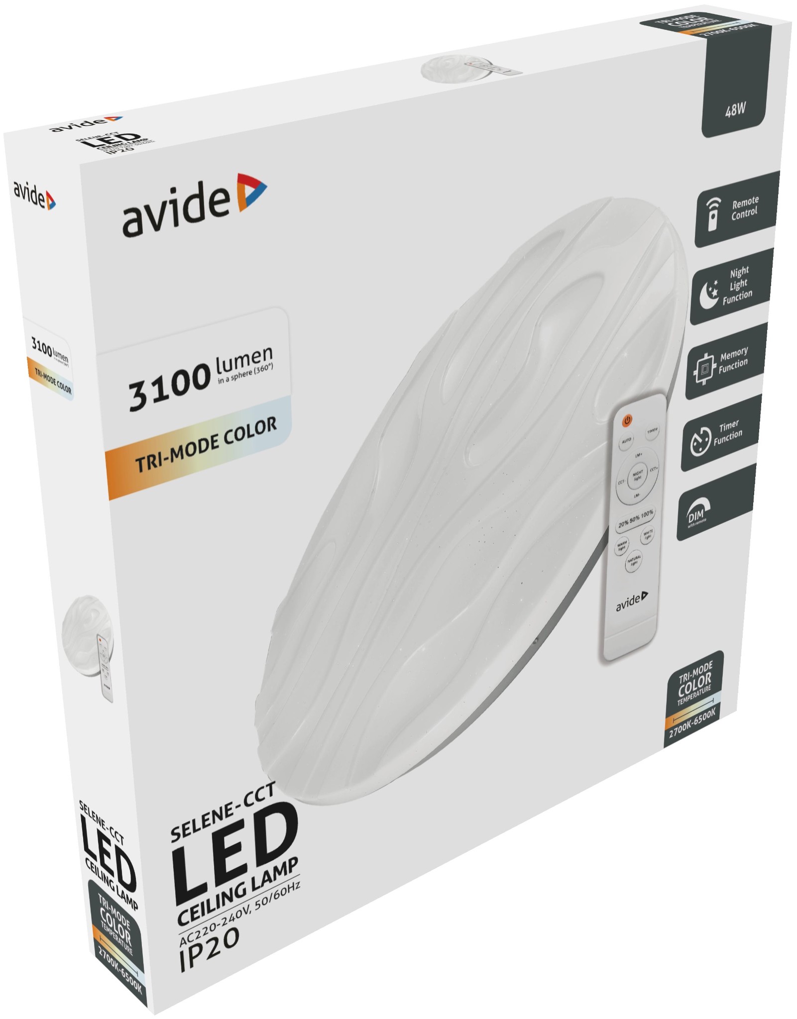 Avide LED Mennyezeti Lámpa Selene-CCT 48W Távirányítóval