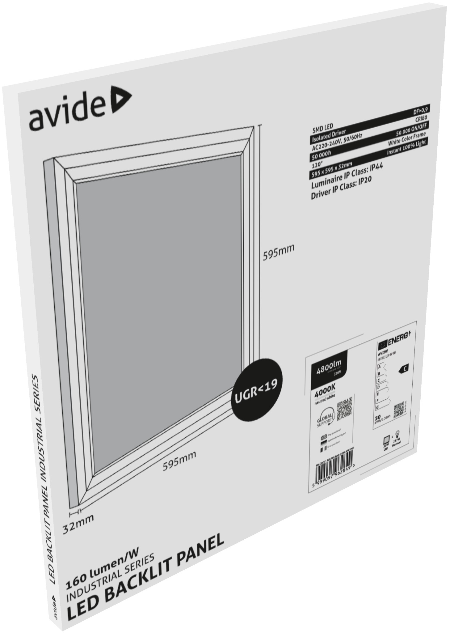 Avide LED Panel 600x600mm 30W NW 4000K 160lm/W Industrial Range Backlit