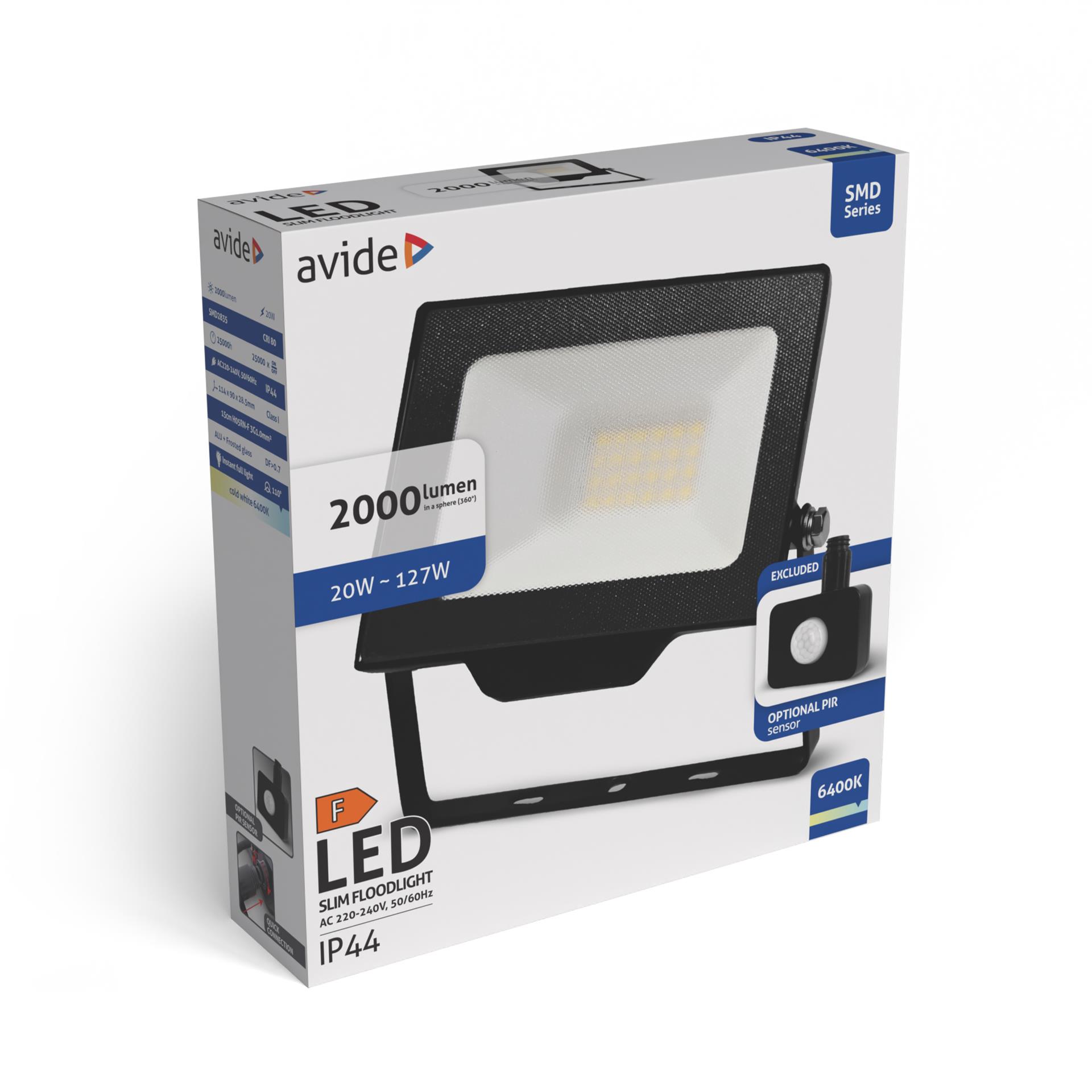 Avide LED Reflektor SMD 20W CW 6400K Opc.PIR