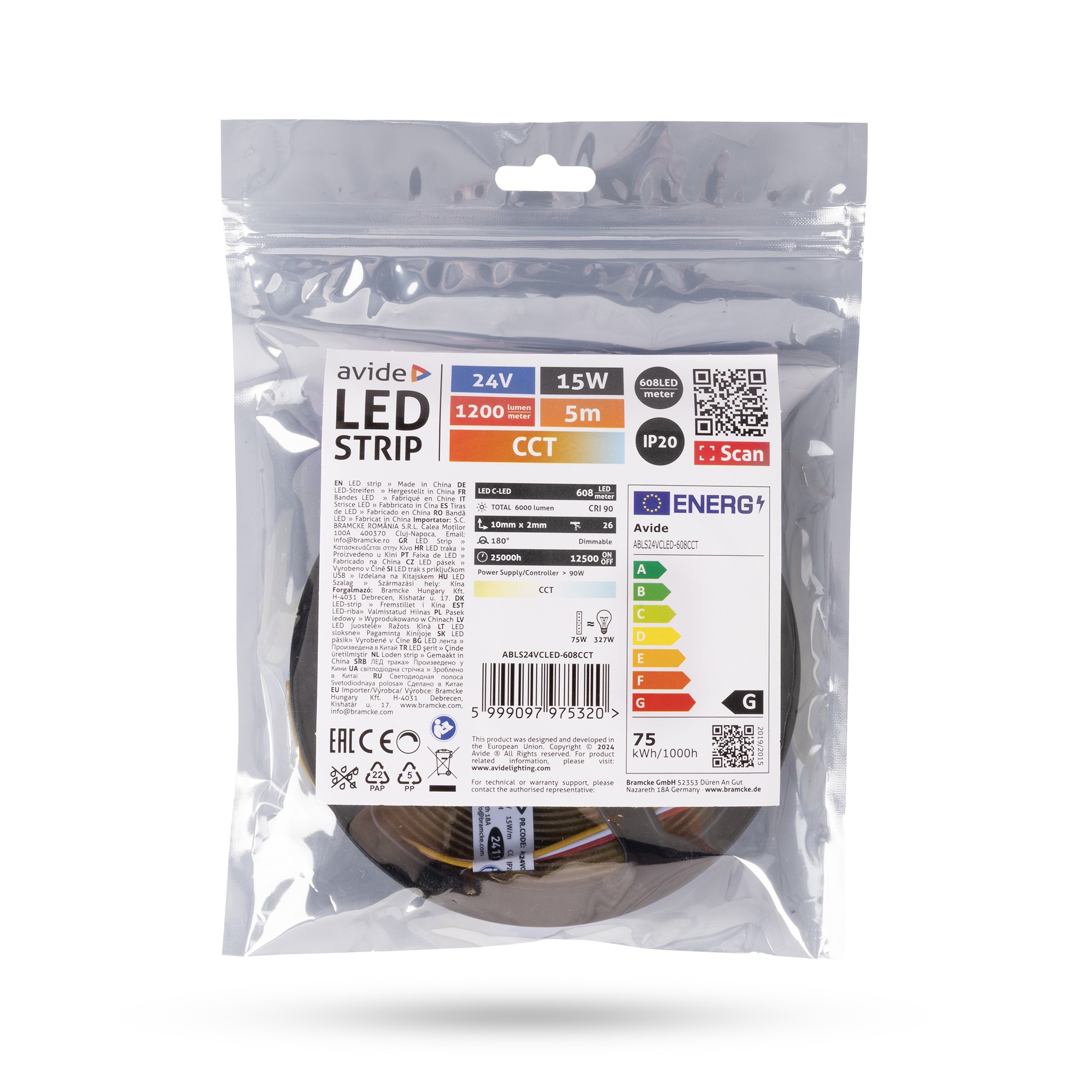 Avide LED Szalag C-LED 24V 15W CCT (3000K-6400K) IP20 5m | BR (SKU:ABLS24VCLED-608CCT)