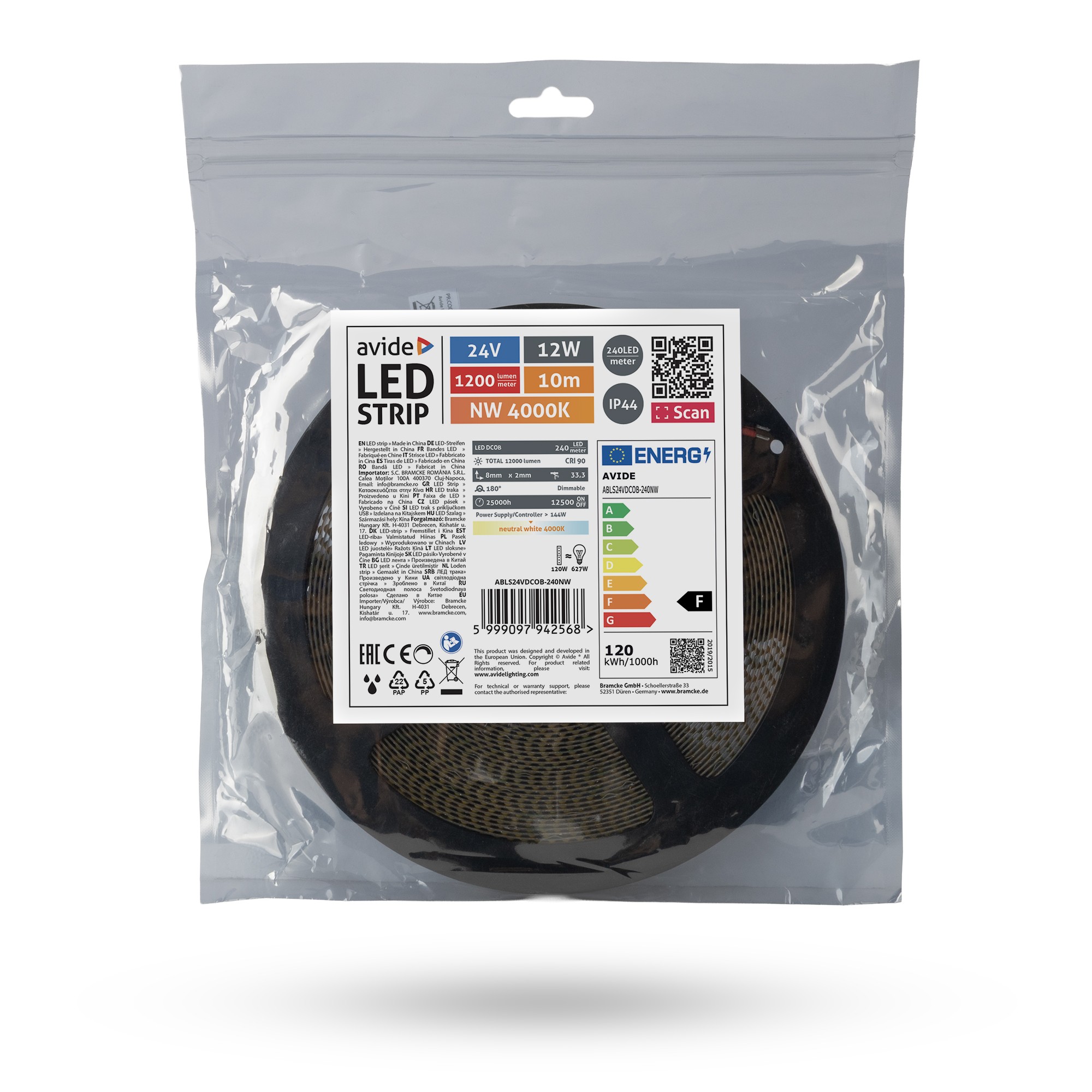 Avide LED Szalag D-COB 24V 12W 4000K NW IP44 10m | BR (SKU:ABLS24VDCOB-240NW)