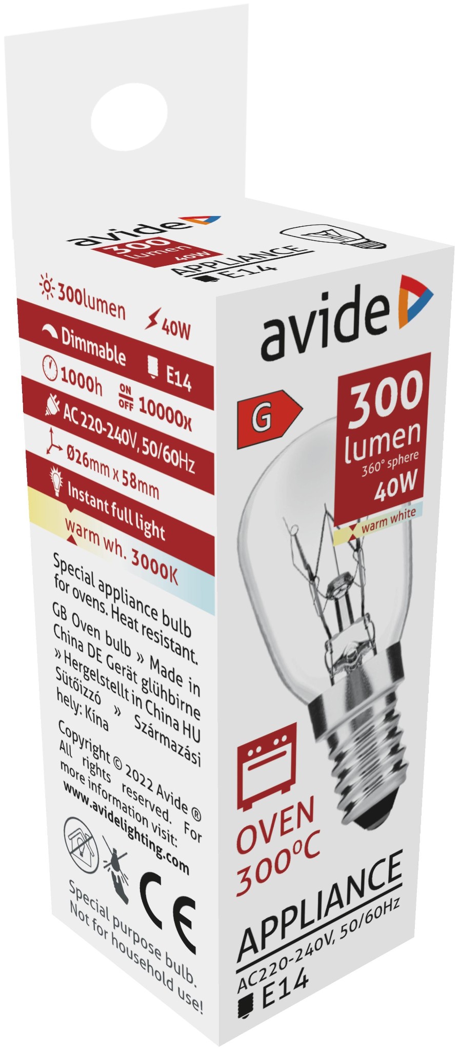 Avide Sütőizzó 300°C izzó 40W E14 WW 3000K