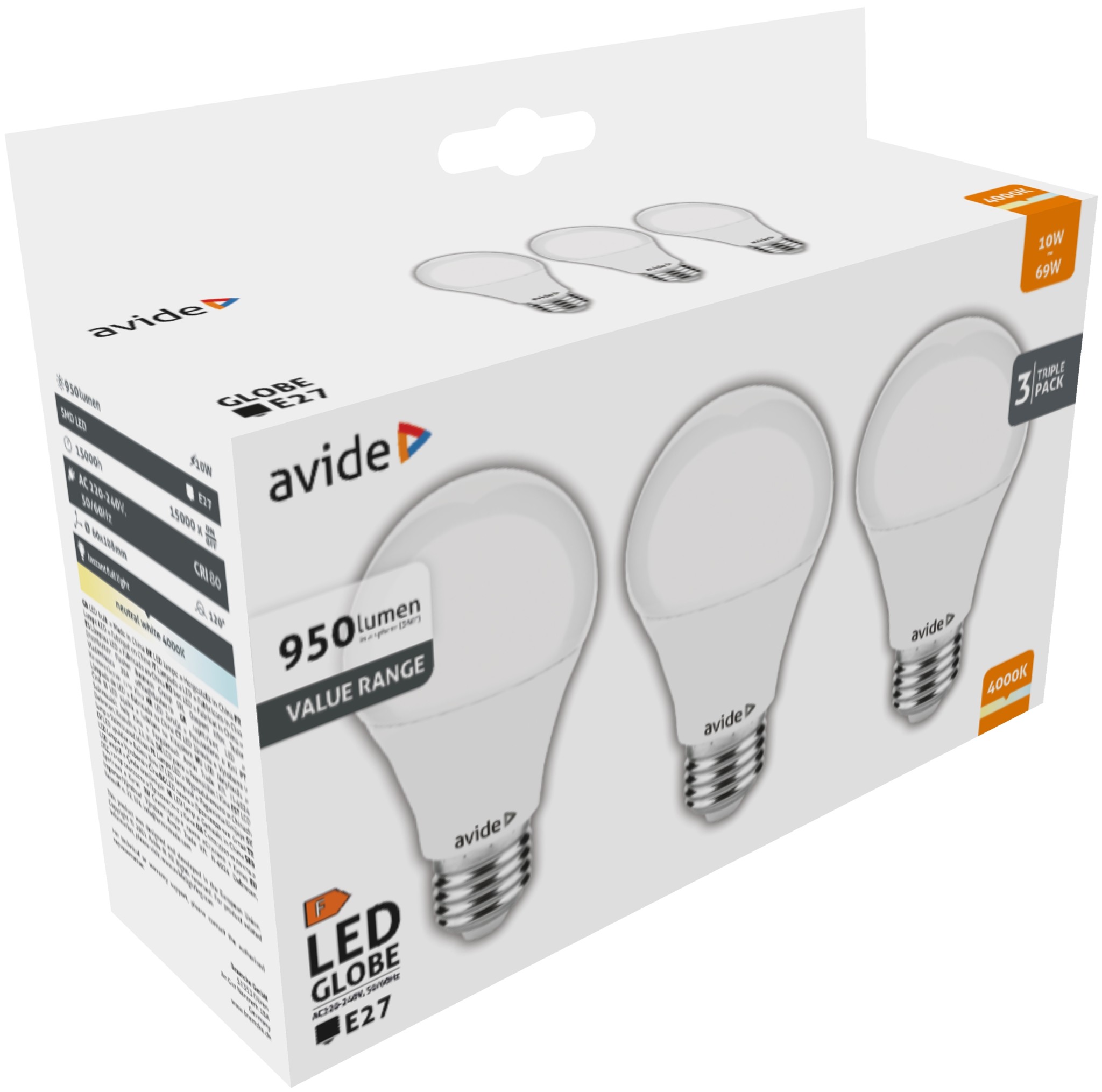 Avide Value LED Globe E27 10W NW 4000K Triple Pack