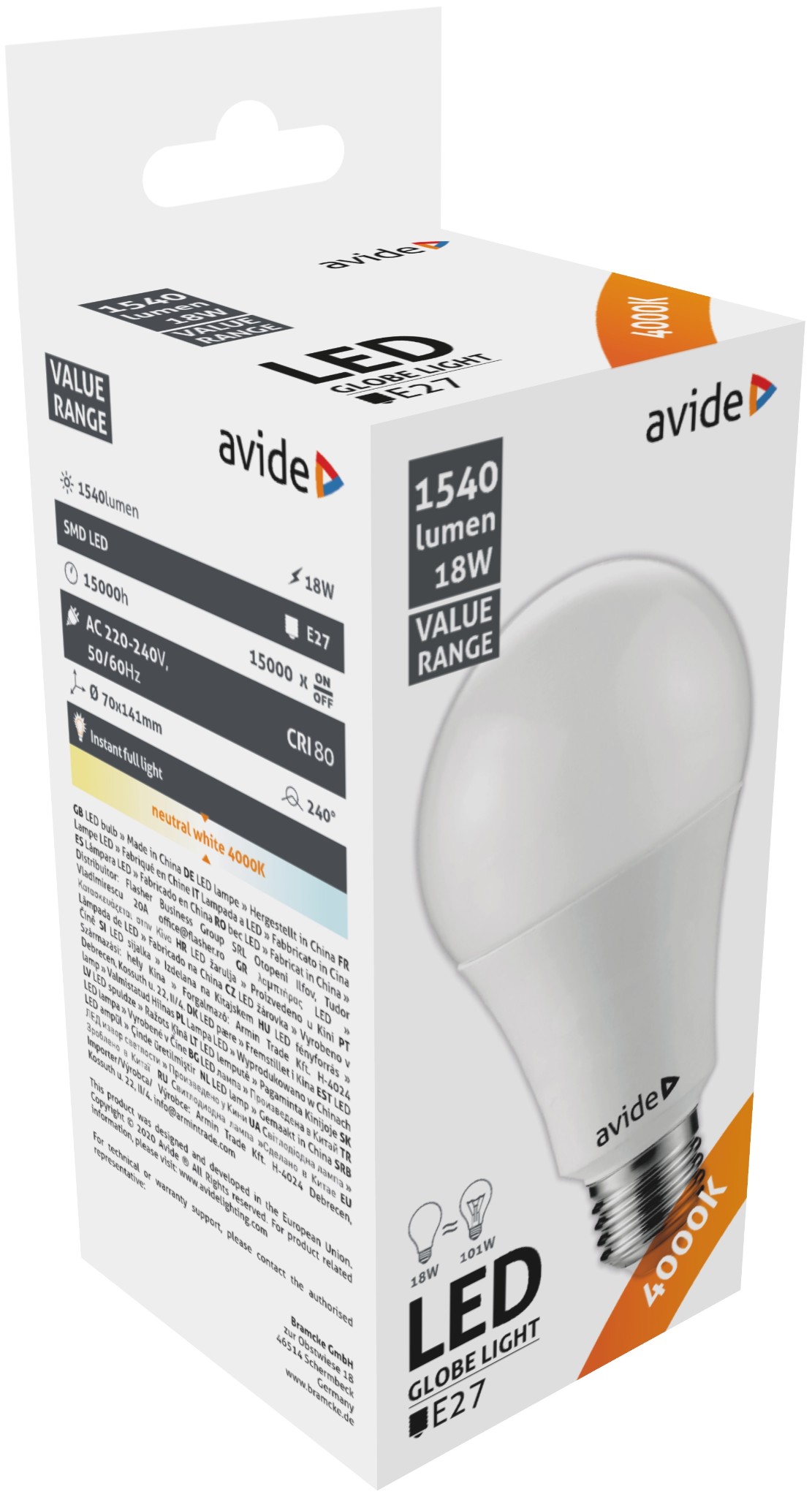 Avide Value LED Globe E27 18W NW 4000K