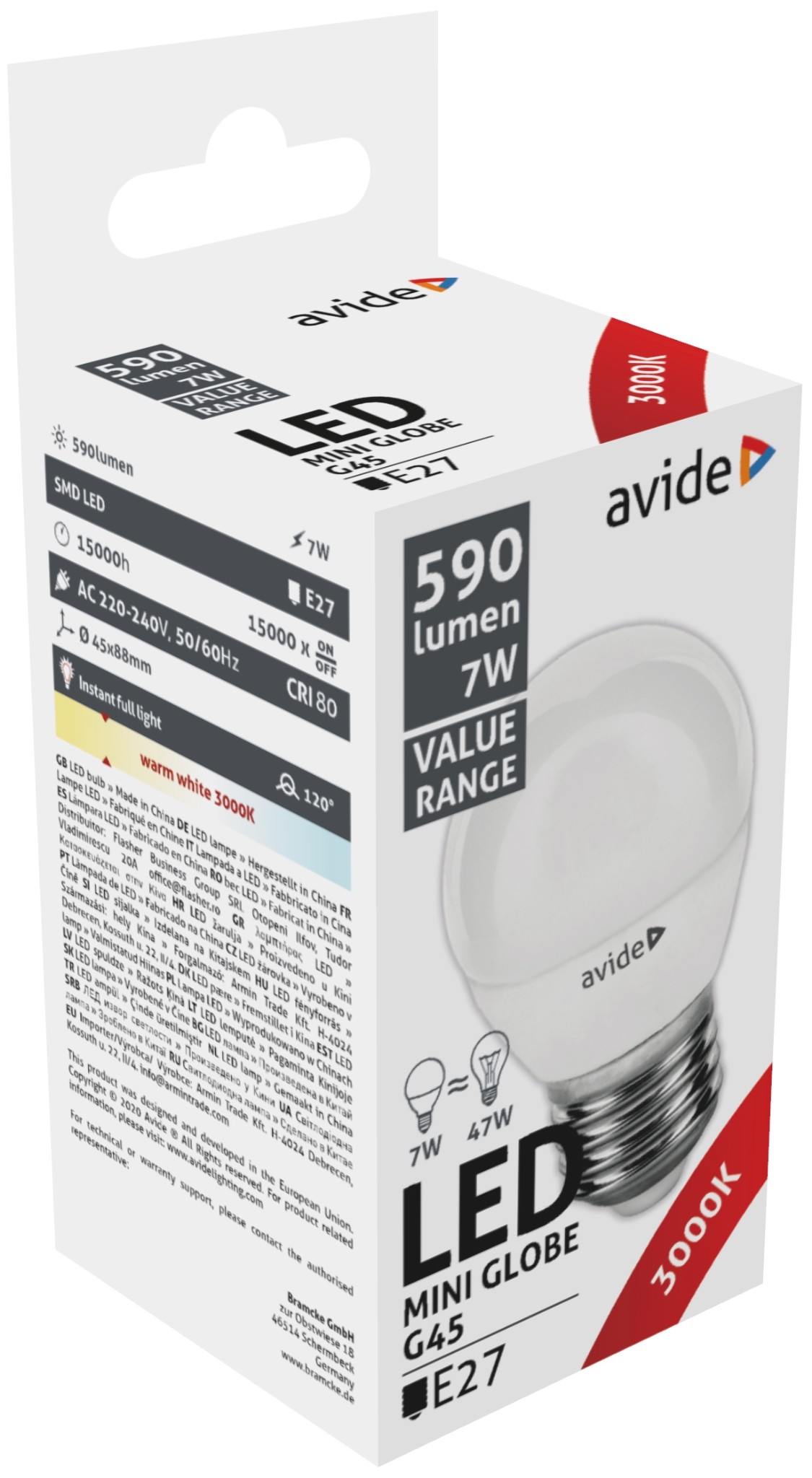 Avide Value LED Mini Globe E27 7W WW 3000K