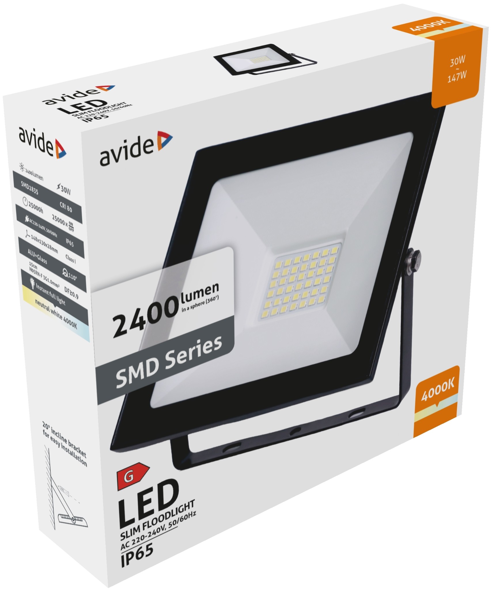 Avide Value LED Reflektor Slim SMD 30W NW 4000K