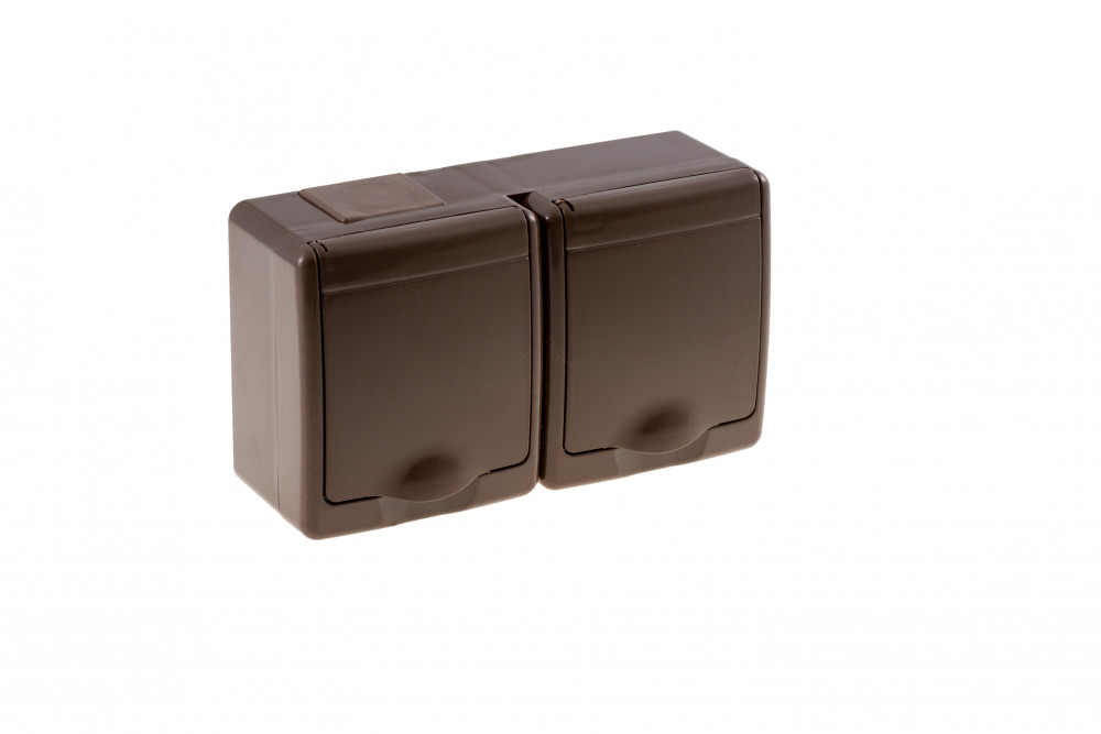 Barna dupla dugalj, kültéri, vízmentes, barna csapófedéllel, IP44
