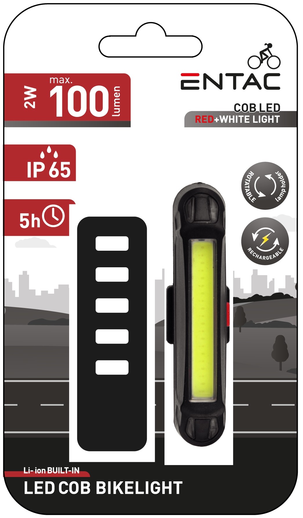 Entac Biciklilámpa Műanyag Fehér-Piros Újratölthető | BR (SKU:EBL-RW-CL)