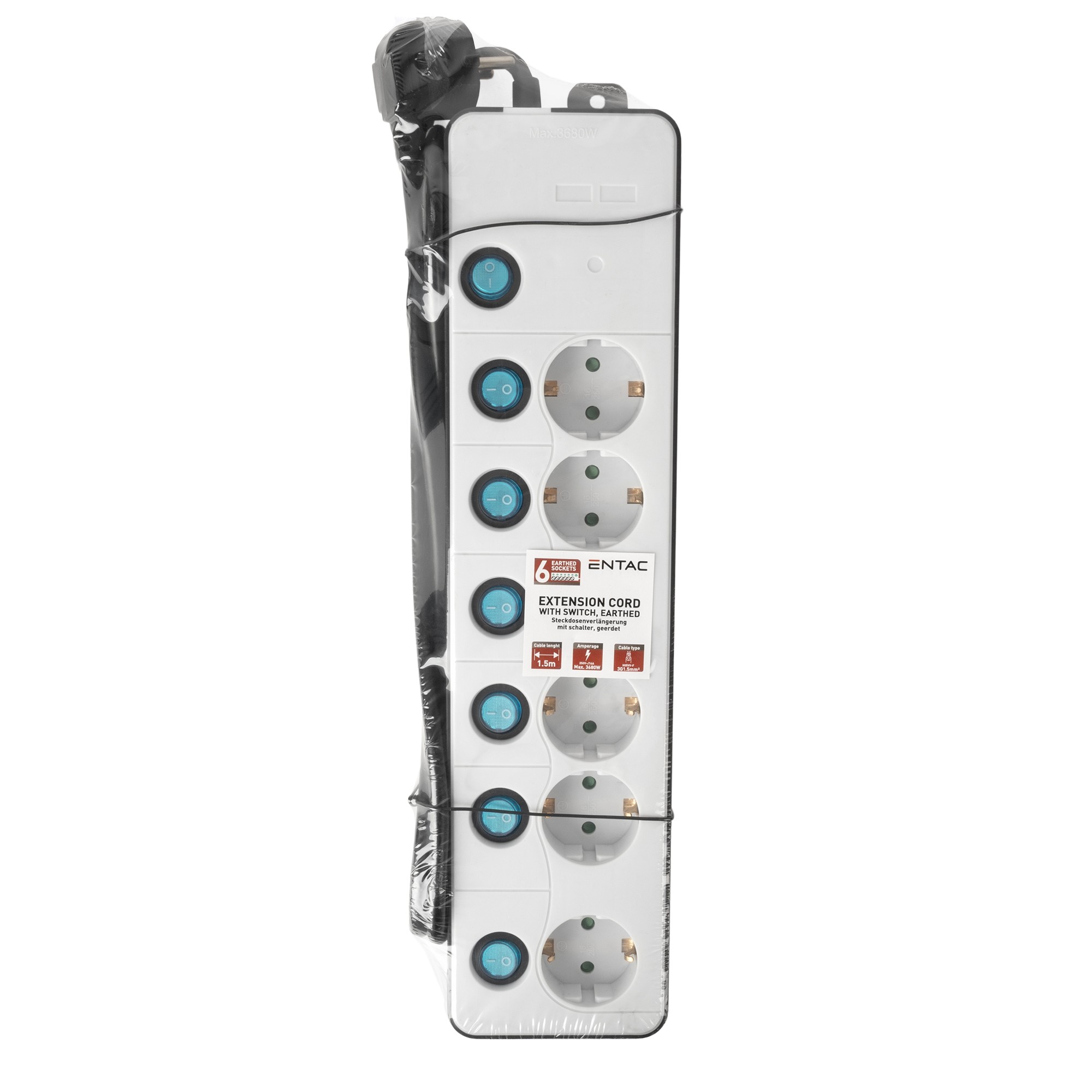 Entac Elosztó 6 Foglalat Különálló Kapcsolóval 1.5m 3G1.5