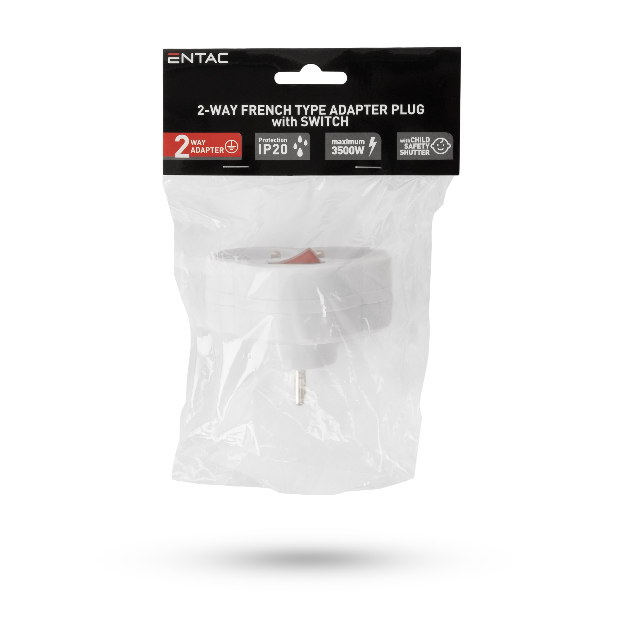 Entac French Type, Power Adapter, 2*E sockets , with switch