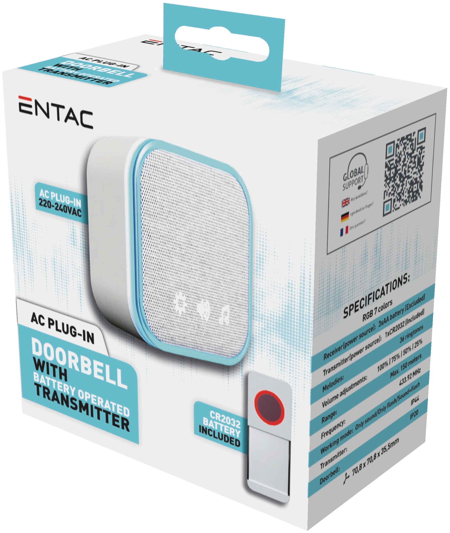Entac Hálózati Ajtócsengő, Elemes IP44 Adókészülékkel 1xCR2032 Tart.